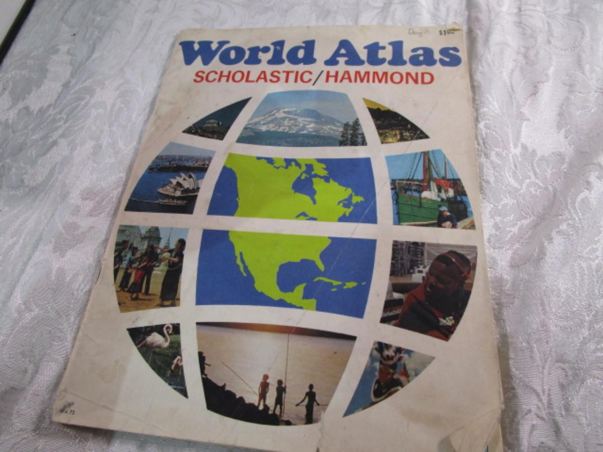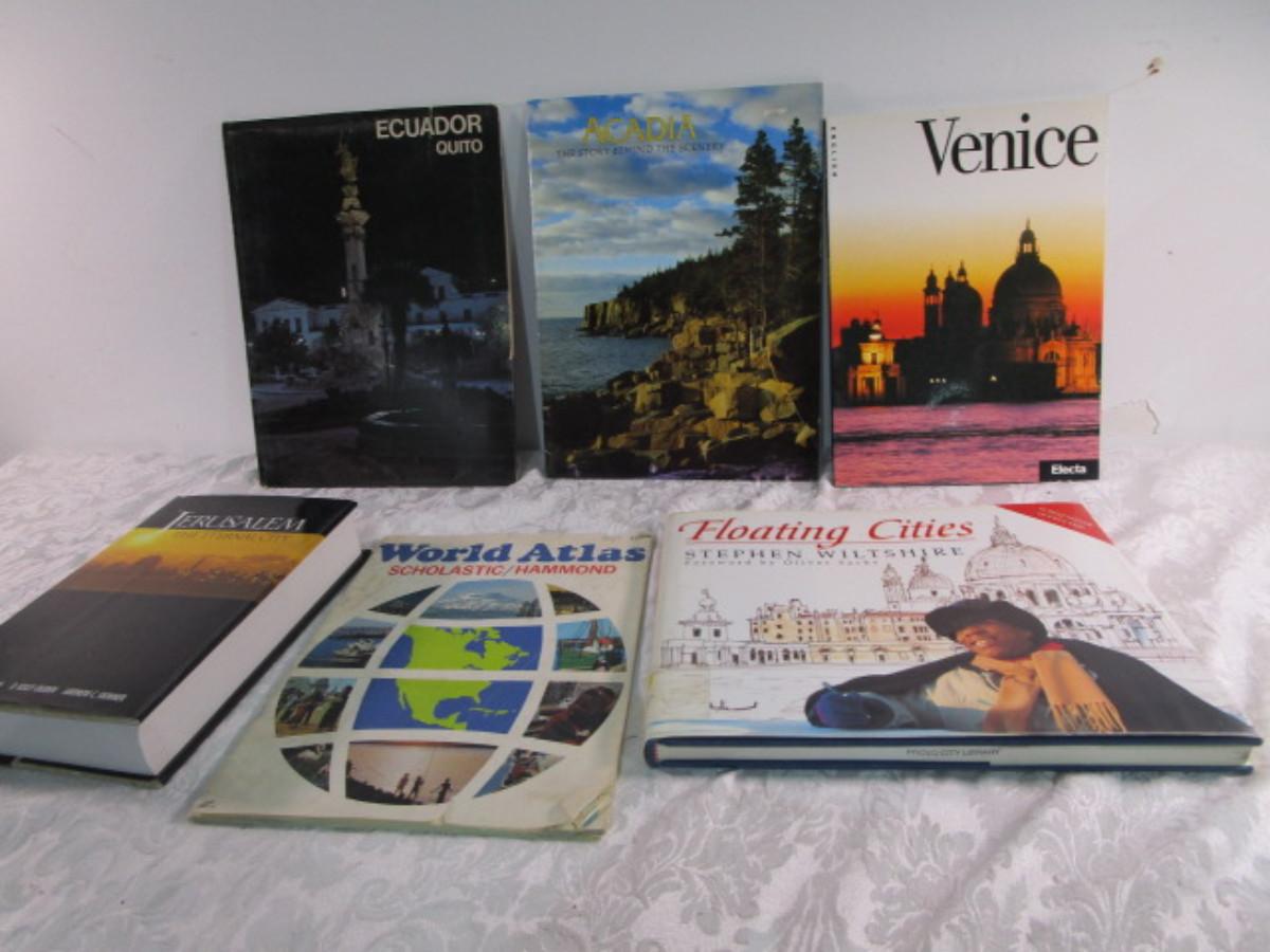 3 travel books, 1 travel magazine, 1 folder, 1 atlas