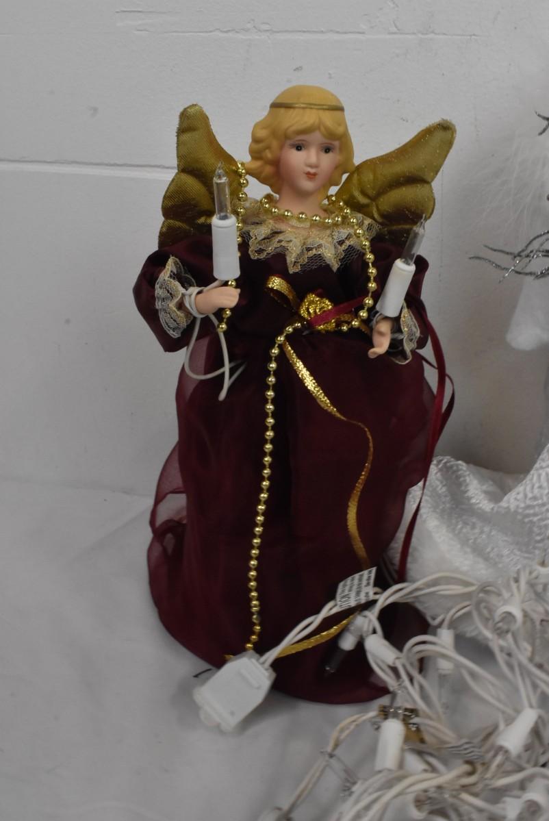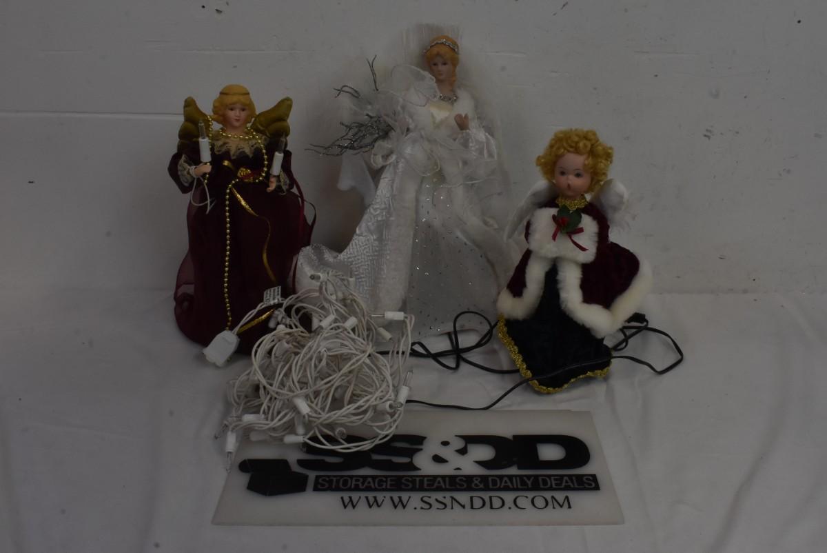 3 Tree top Angels, (2) light up, strand of white lights--WORKS