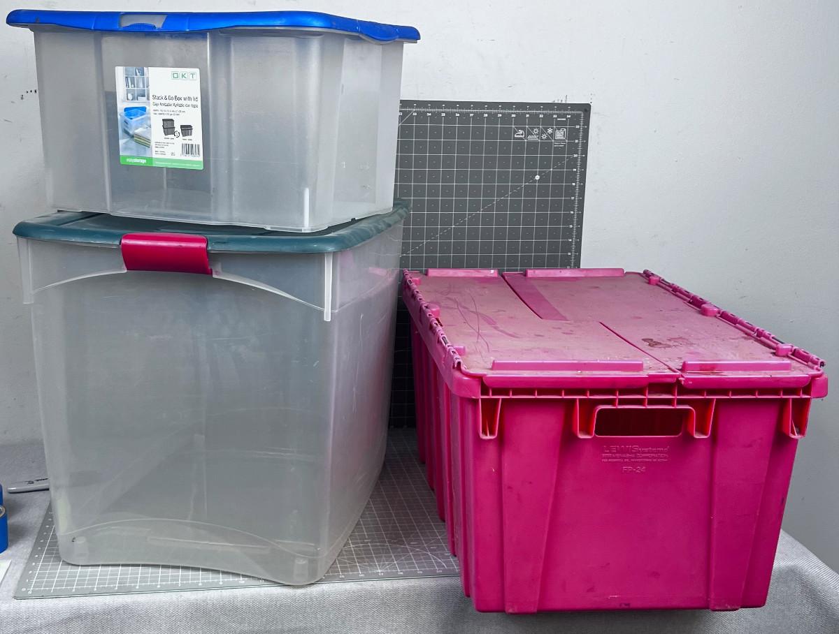 3 - Tubs: 2- Clear and 1 - Red Fold over Grocery Tub