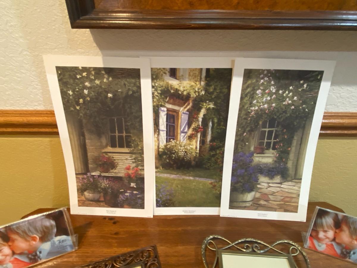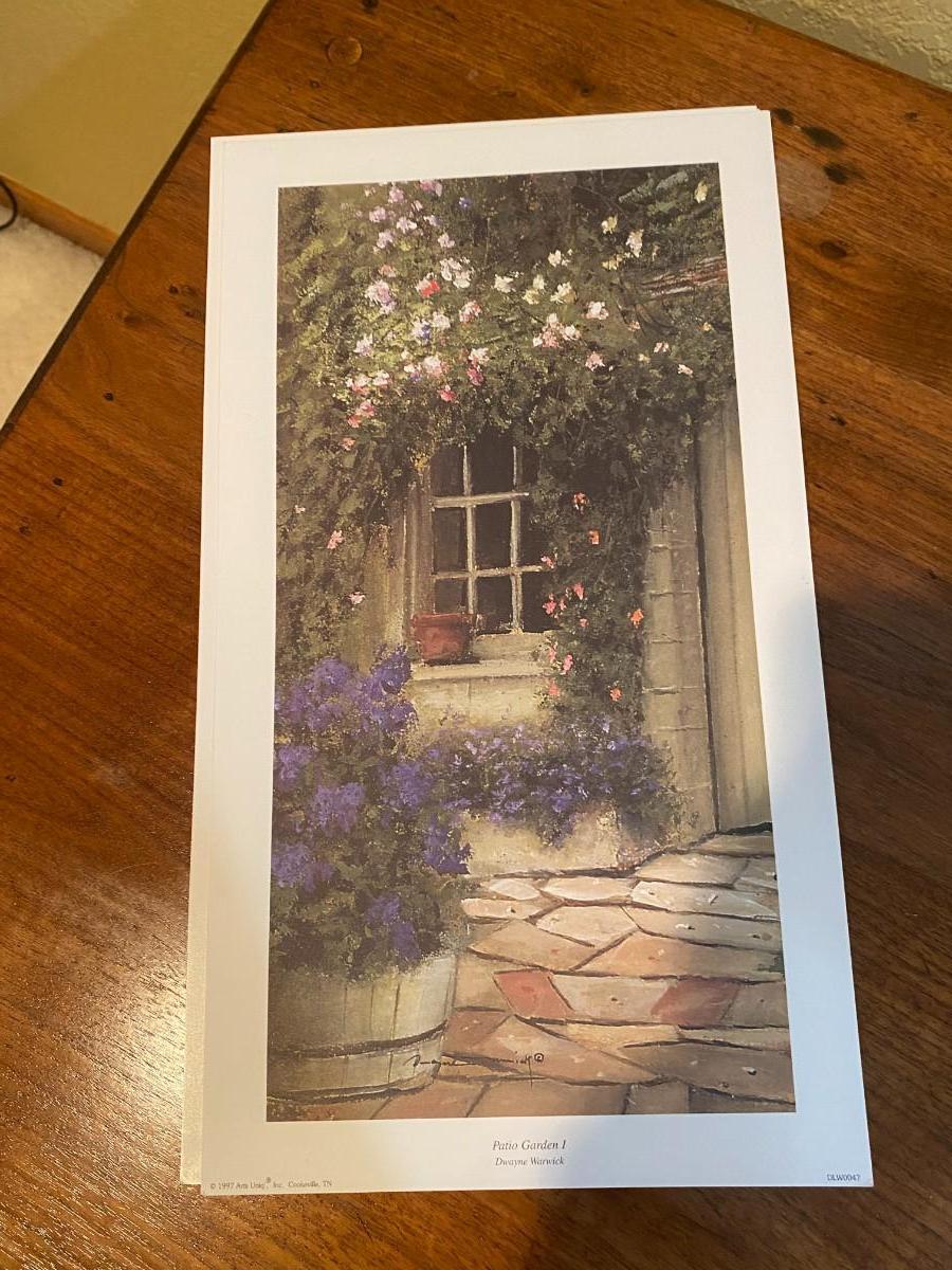 3 UNFRAMED DWAYNE WARWICK PRINTS, AND AN ASSORTMENT OF FRAMES