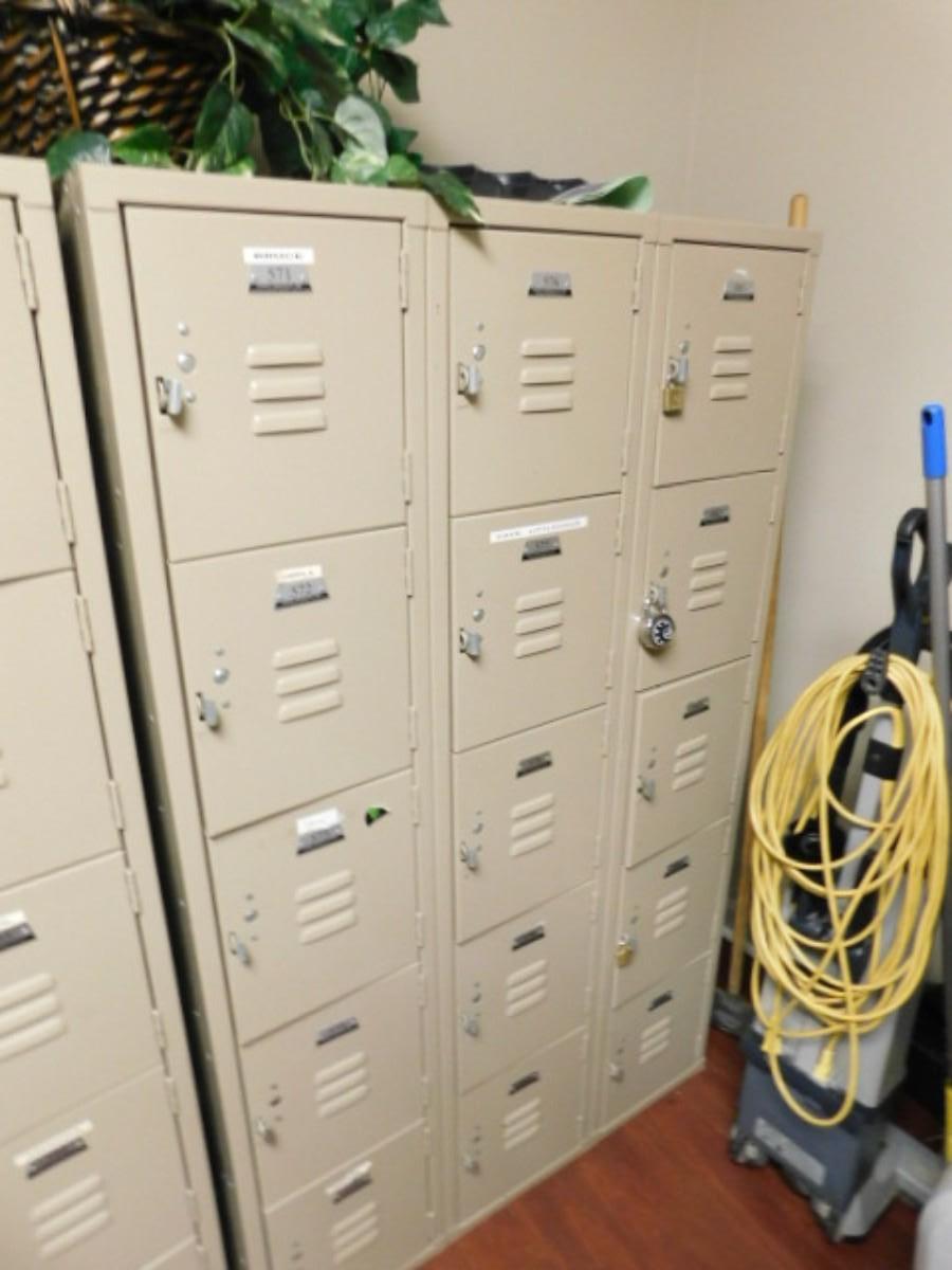 3 Unit Locker Set 15 Compartment Choice B Expect some wear or scratches to finish. Shipping option available via freight or local mover at Buyer's expense. Buyer must have all shipping scheduled within the stated dates and times of pickup. Recommended local mover is Beaty Bros. Moving 828-201-2982