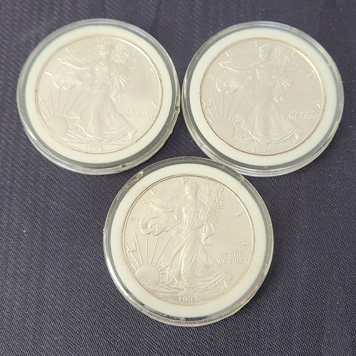 3 United States Mint American Eagle Proof Silver Bullion Coins 1996 2 1997