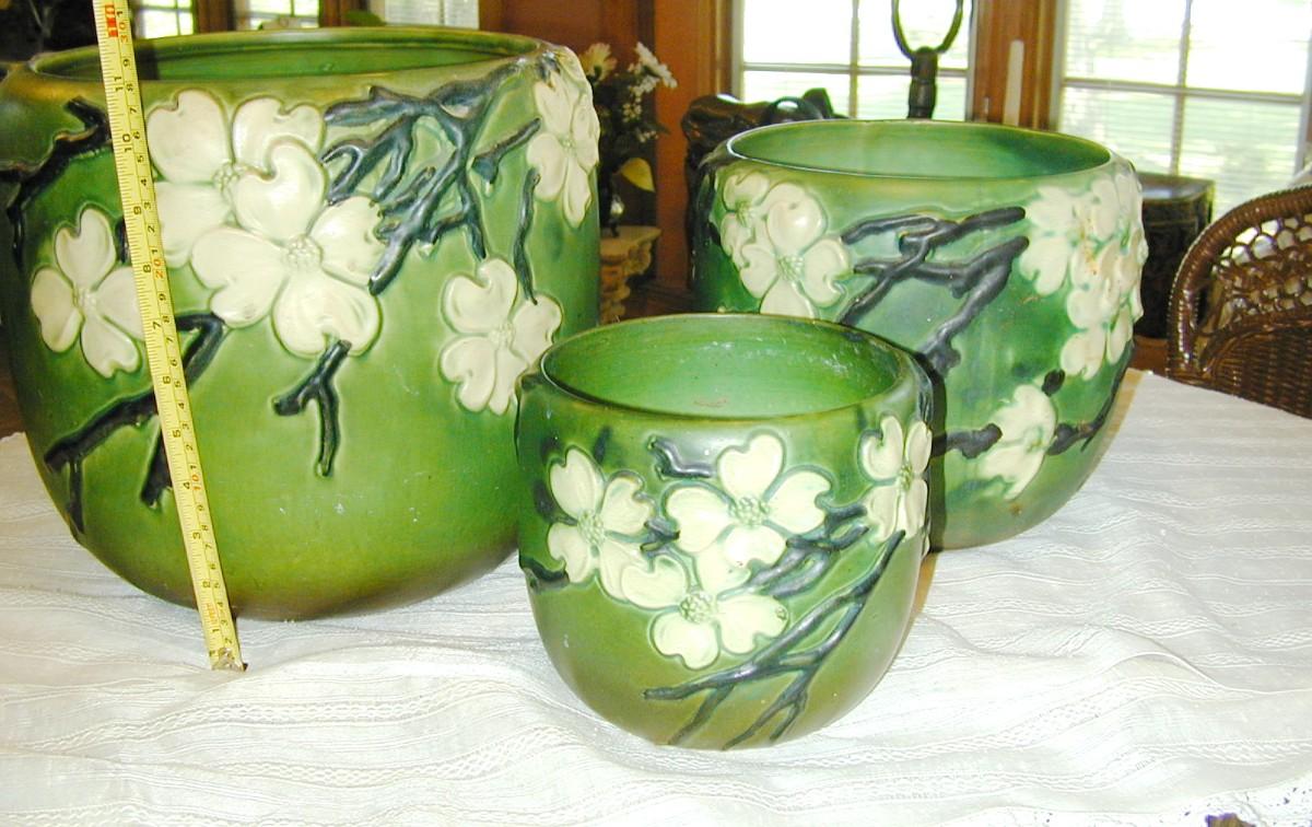 3 Unmarked Dogwood Tree Planters - As Is - the largest one is 10 inches in diameter across the top