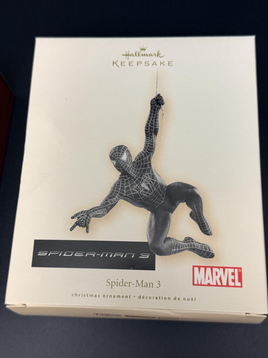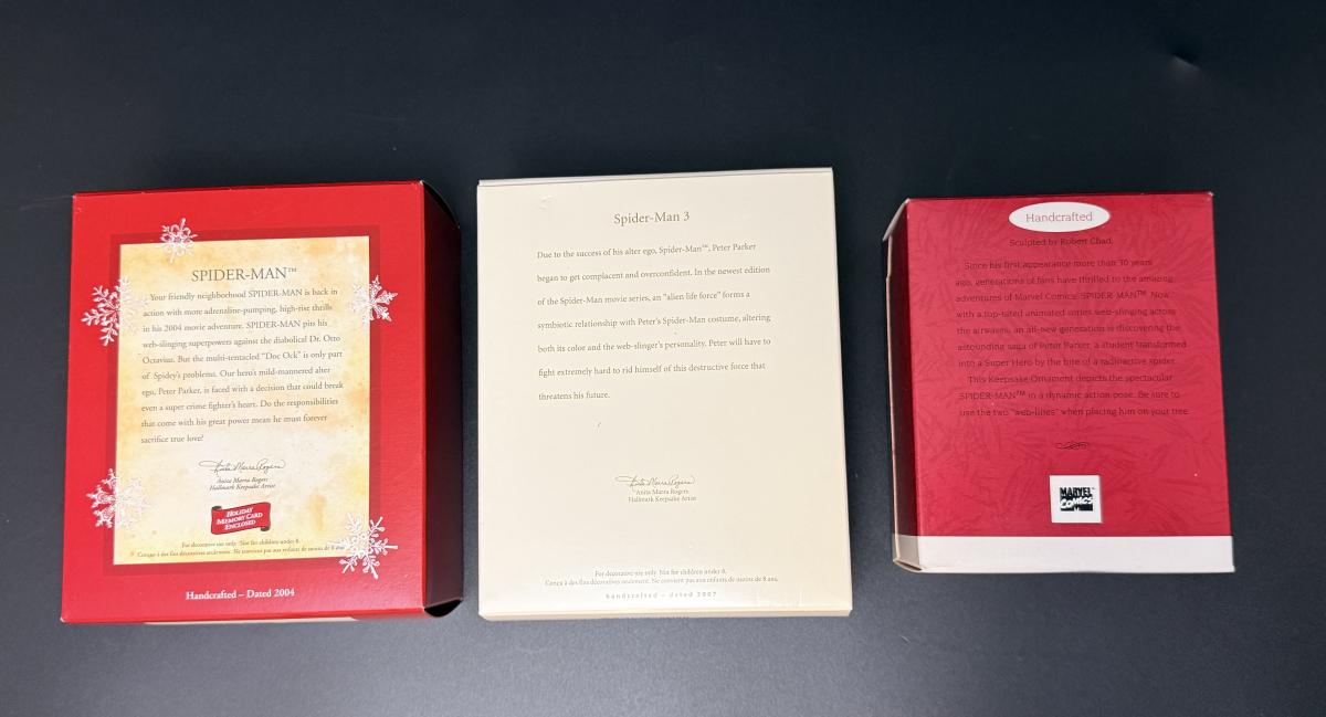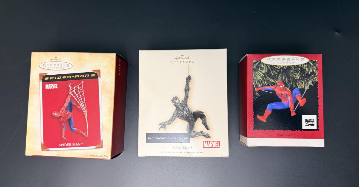3 Nice Unopened Spider-Man Ornaments - in all original packaging.