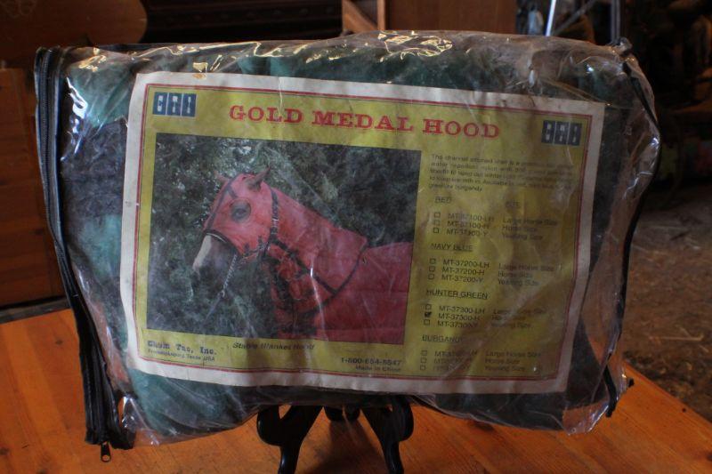 Lot #150: (3) Used Gold Medal Horse Hoods Hunter Green Color (Regular Size Horse)