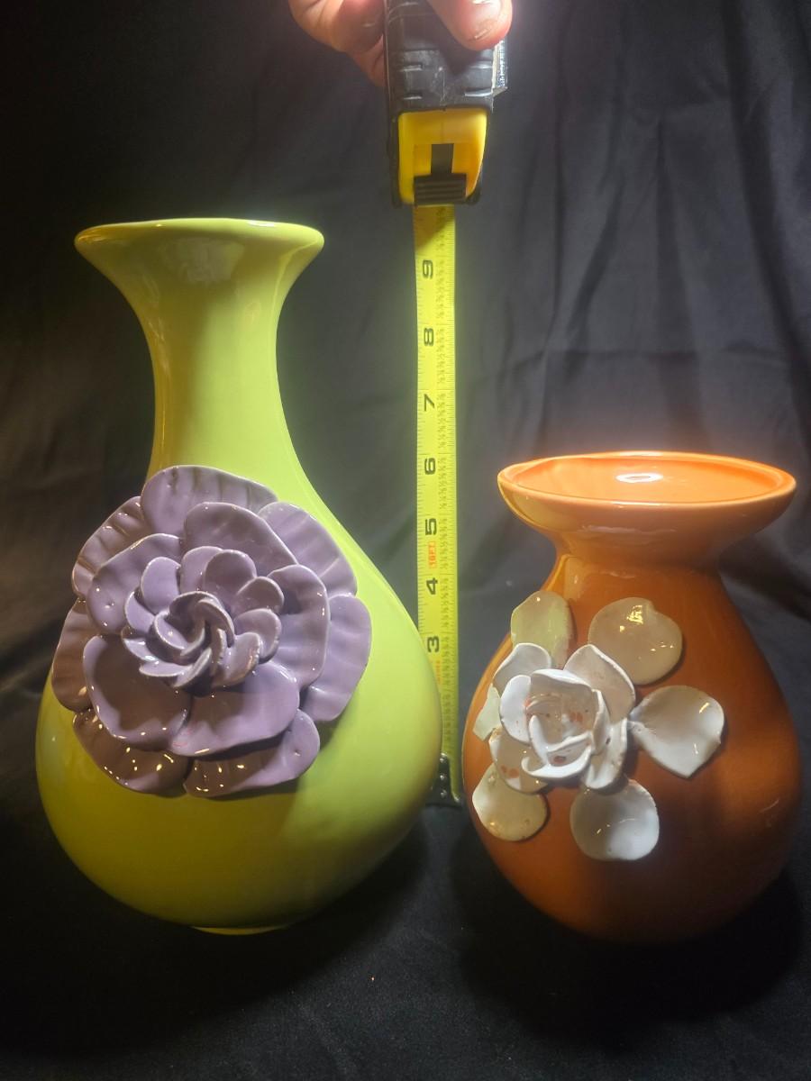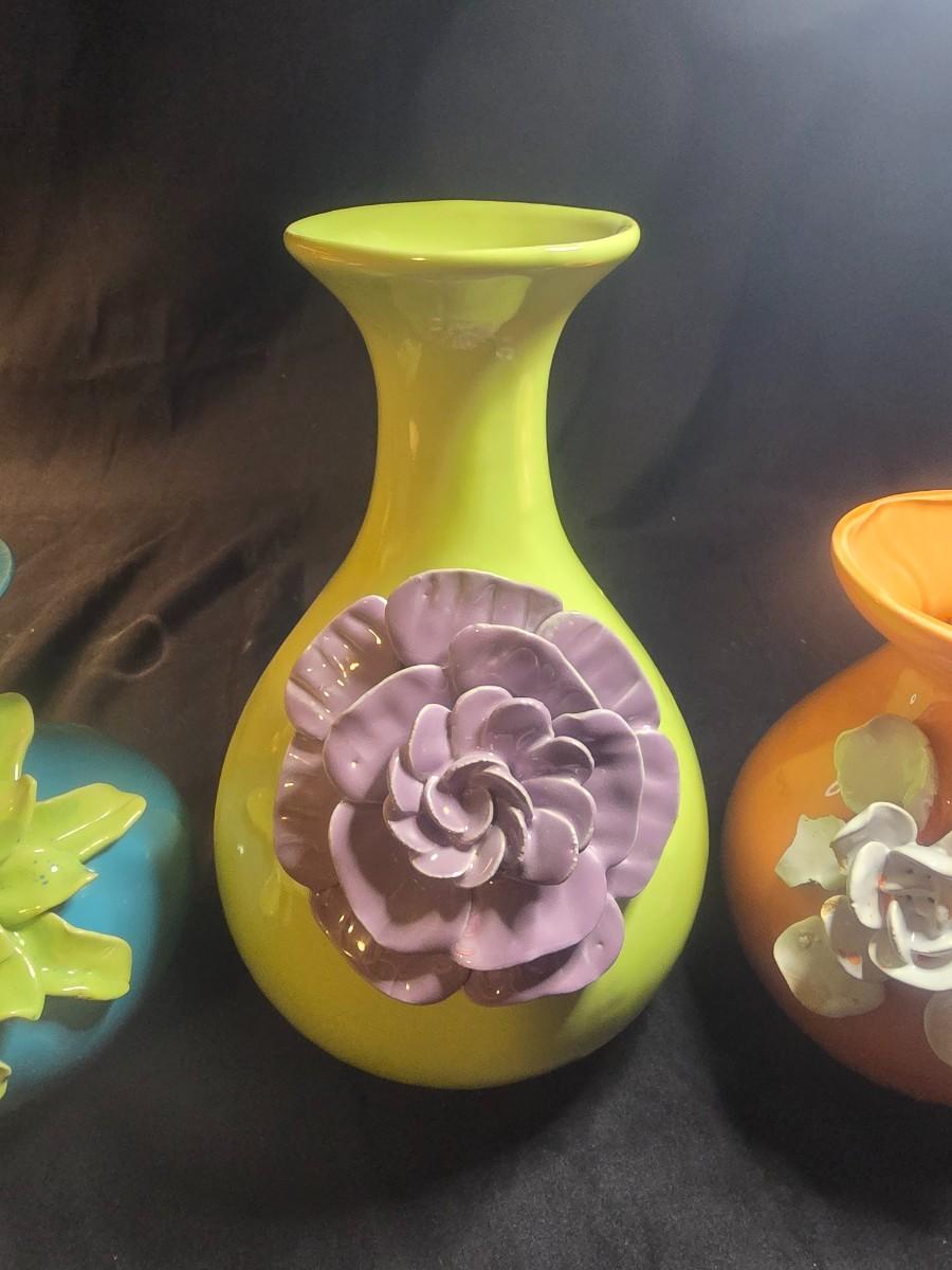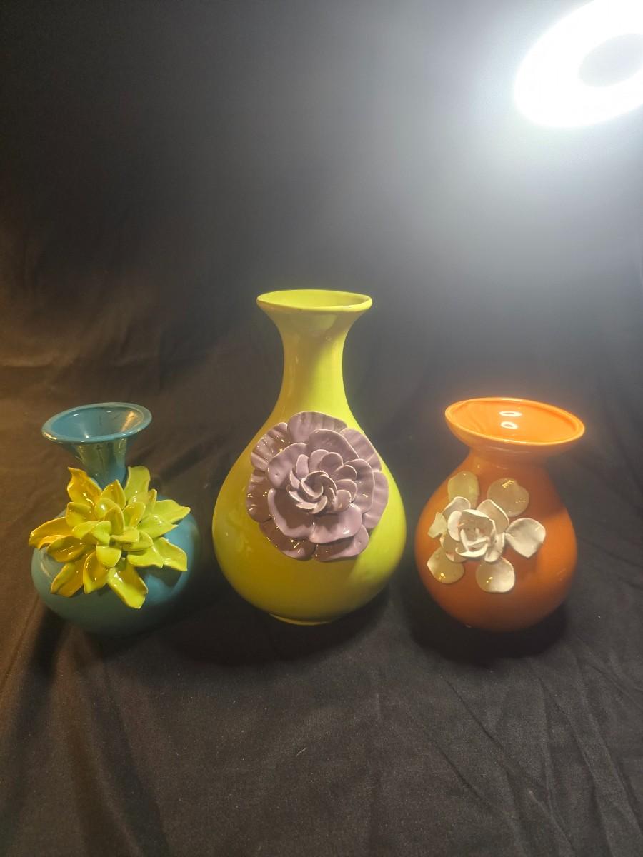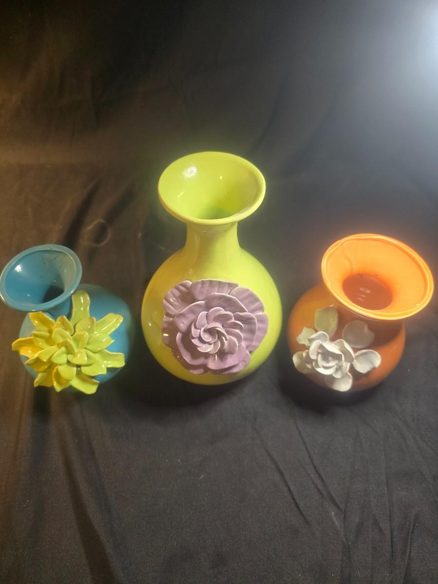 3 VASES WITH DIMENSIONAL BLOSSOMS