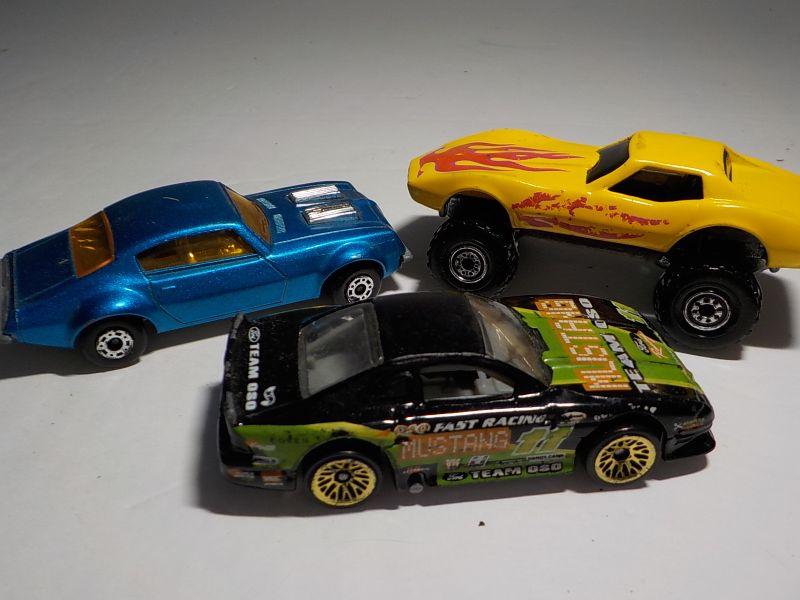 Match box No. 1 fire bird 1975, mustang cobra 97, 1975 Corvette.