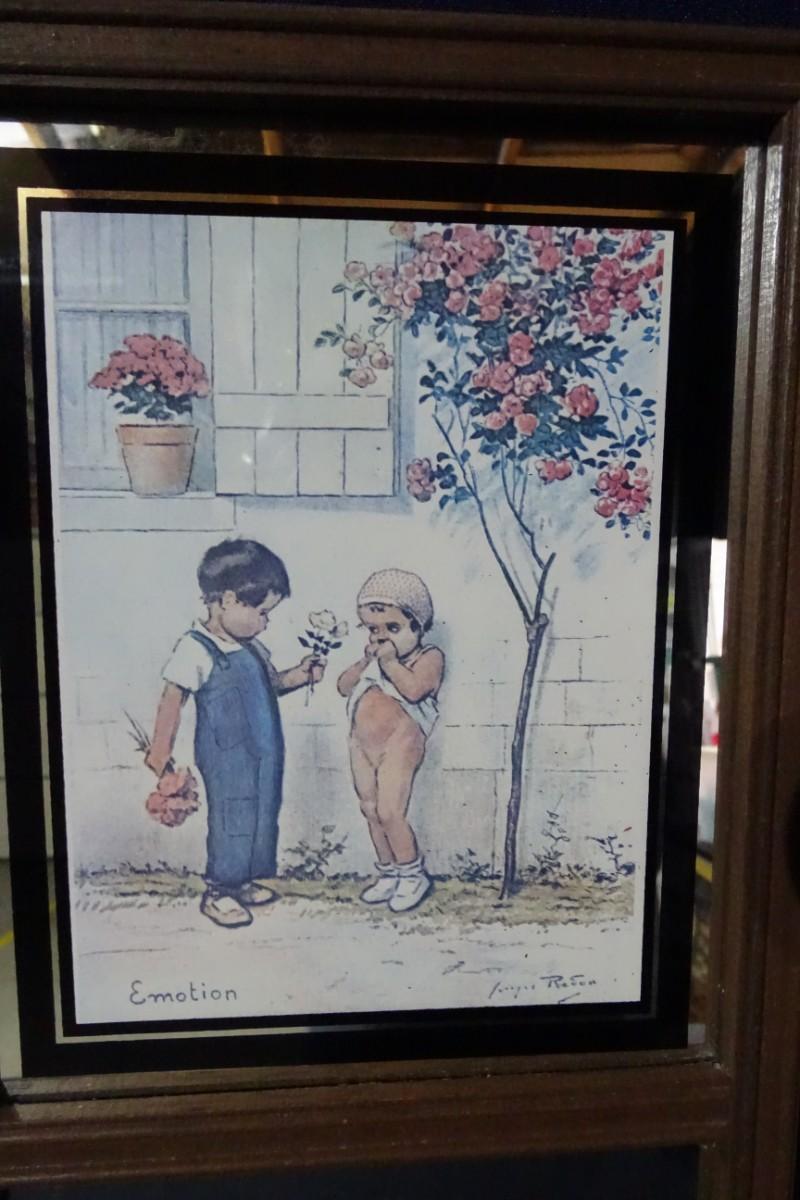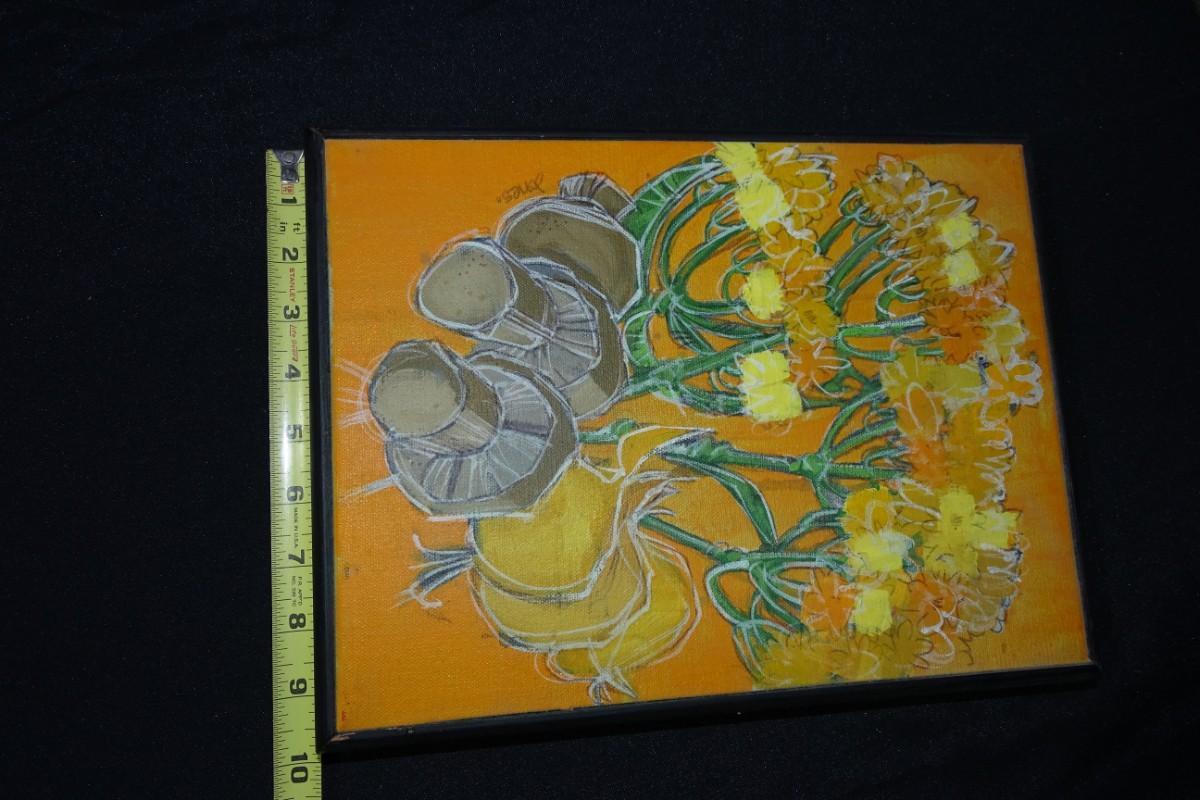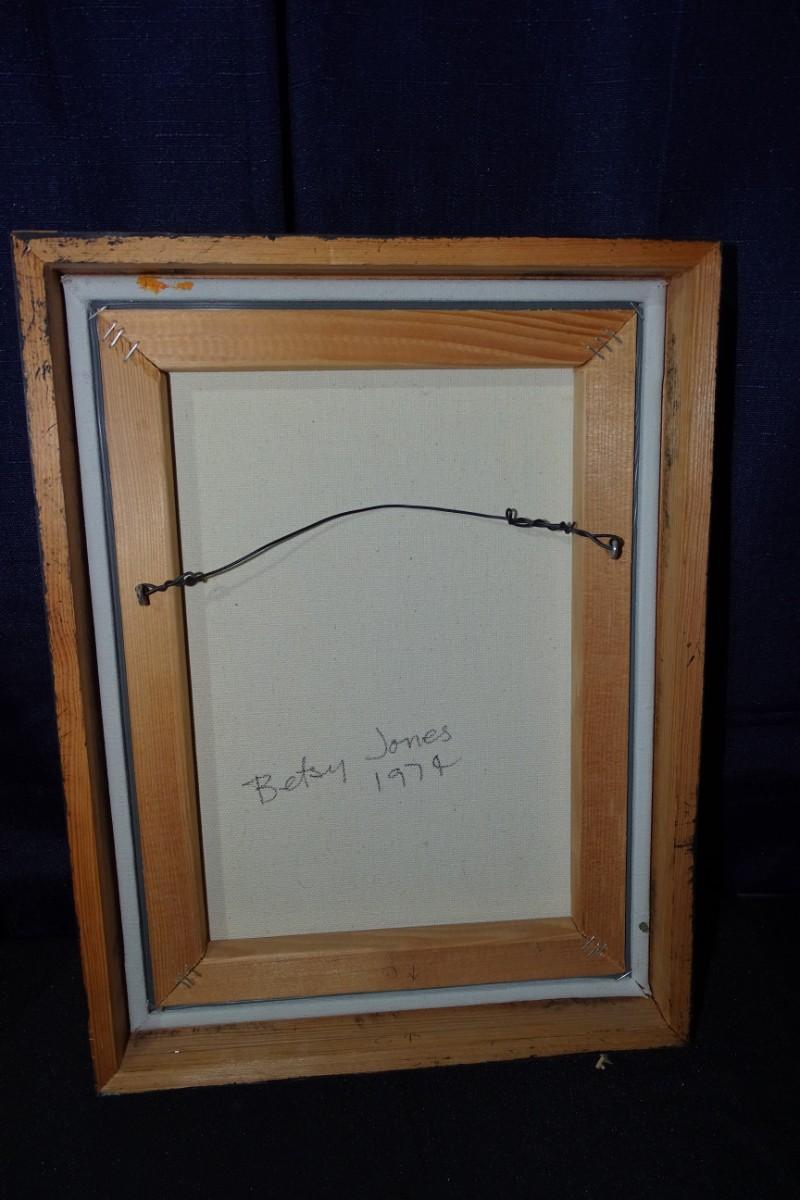 3 Vintage art pieces; Painting by Betsy Jones, 1974 Modernism; mirror and print décor piece by Georges Redon   titled "Emotion"