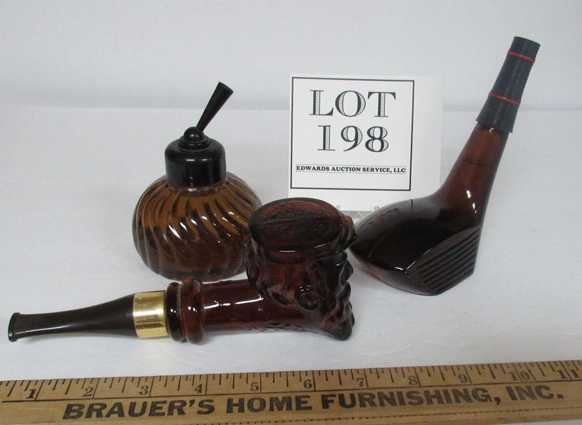 3 Vintage Avon Bottles, Ink Well, Pipe, Golf Club