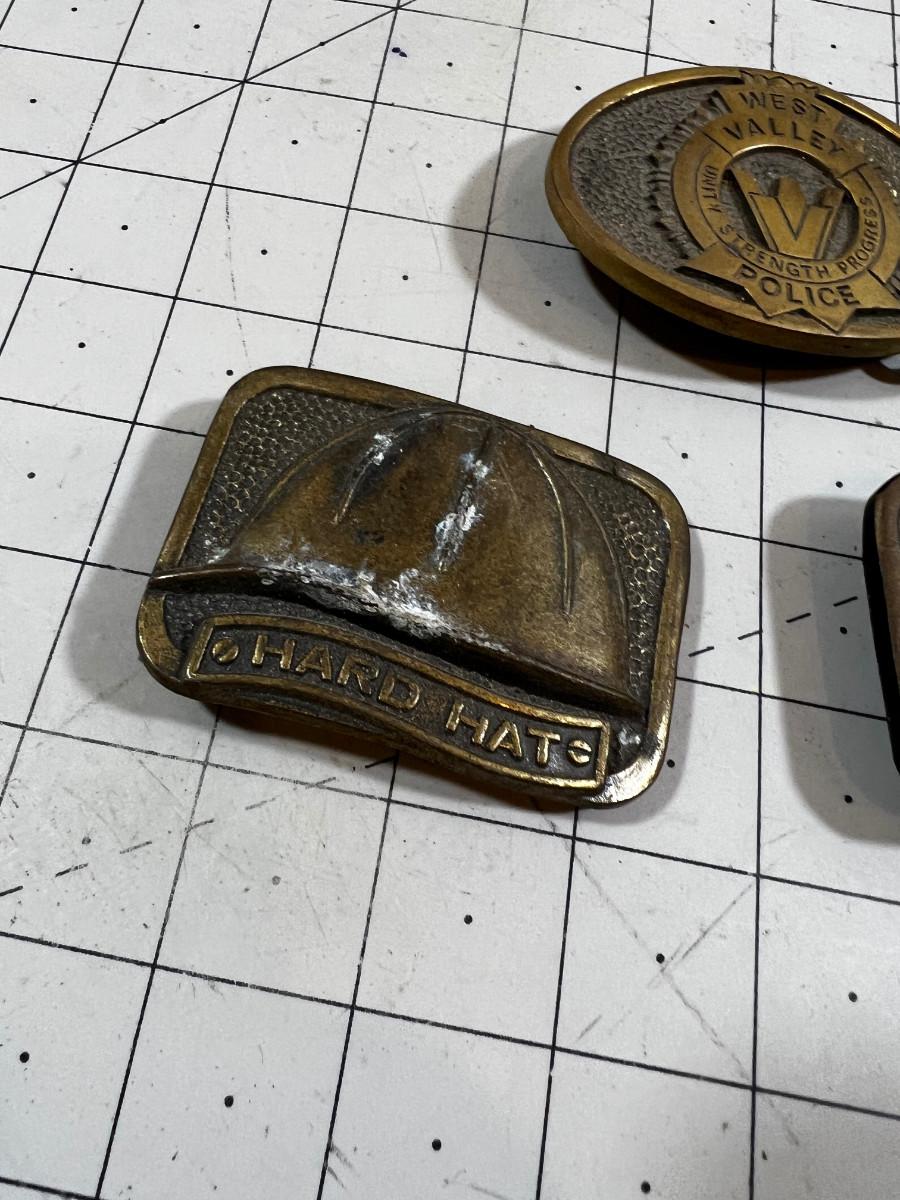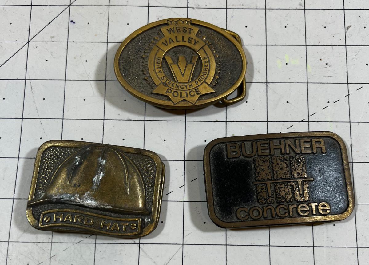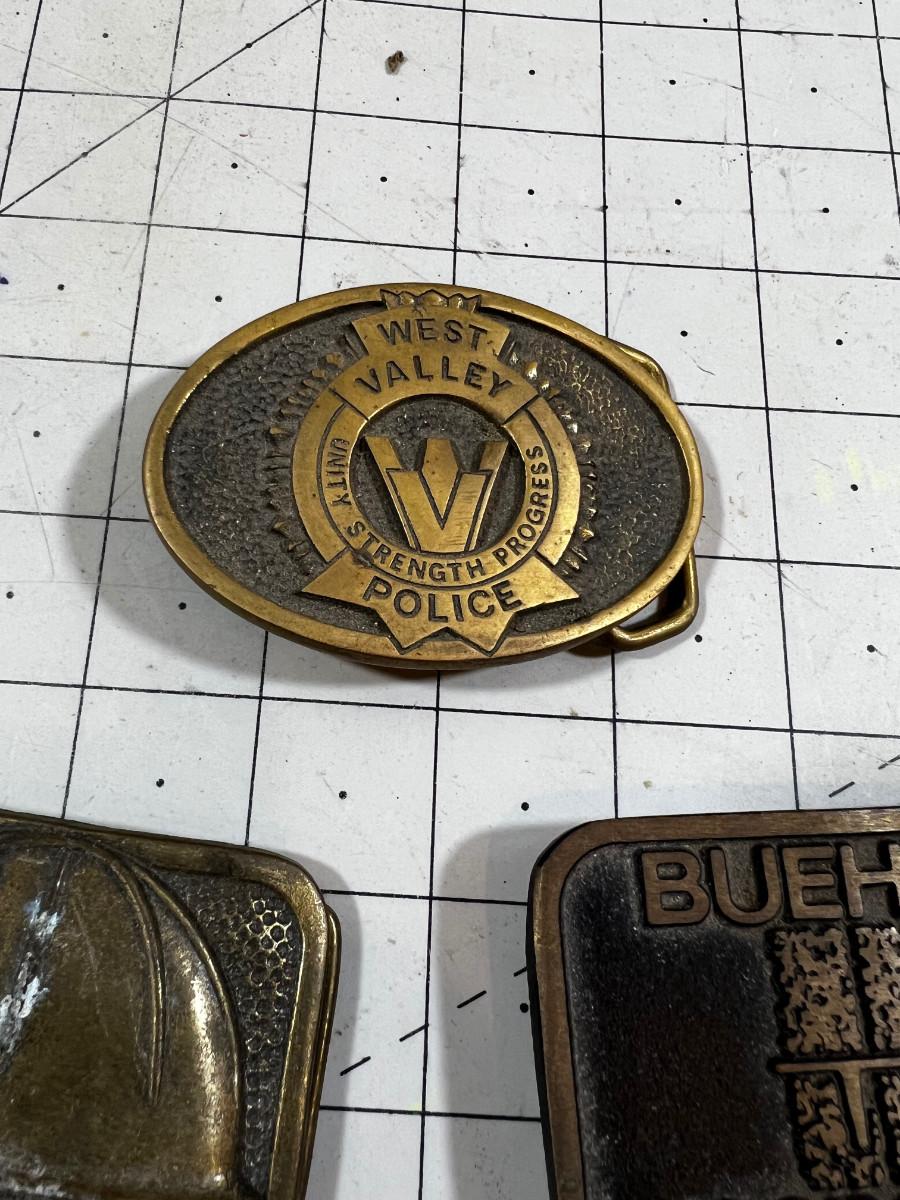 3 Vintage Belt Buckles Brass Including West Valley Police