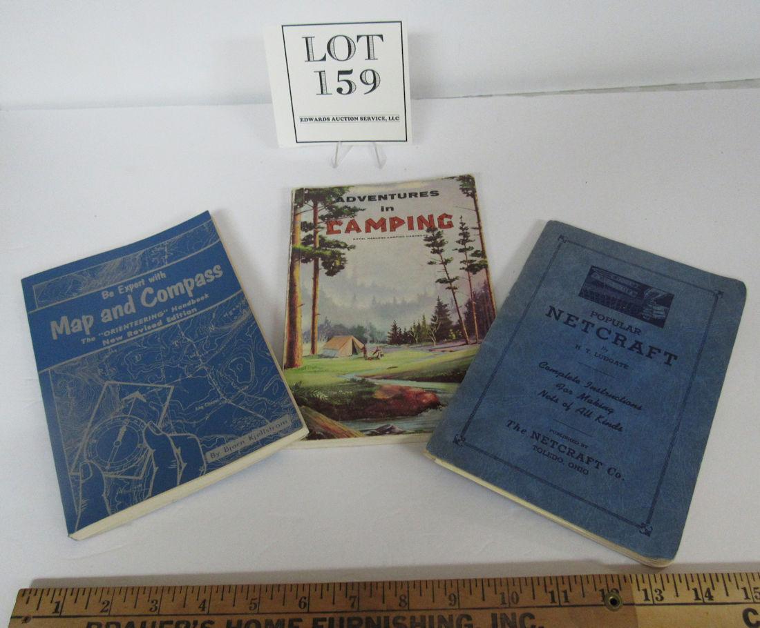 3 Vintage Books: Adventures in Camping 1968, Expert w/Map and Compass 1967, Popular Netcraft 1948 and Knots Instructions