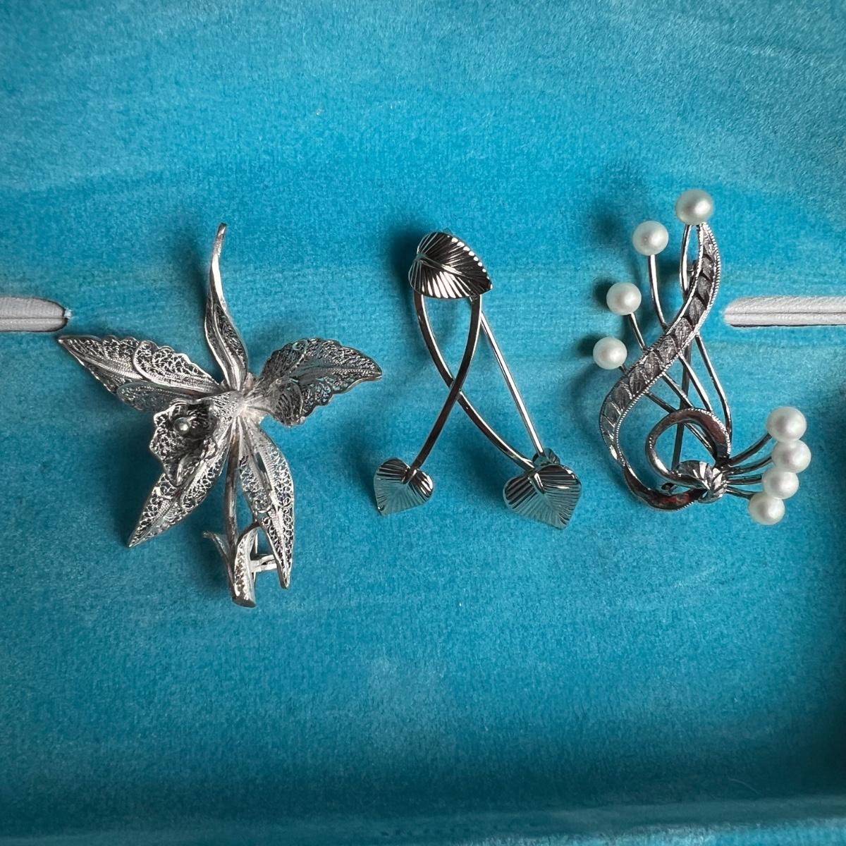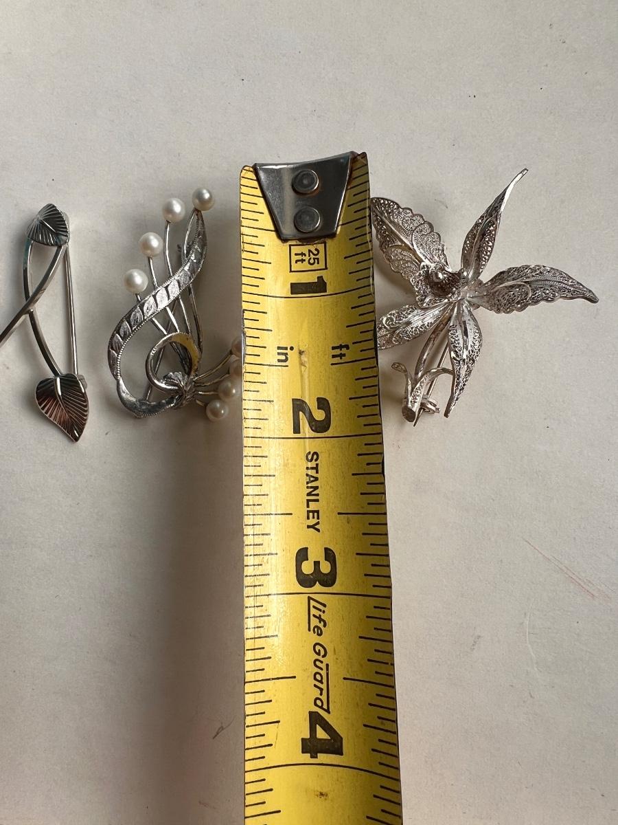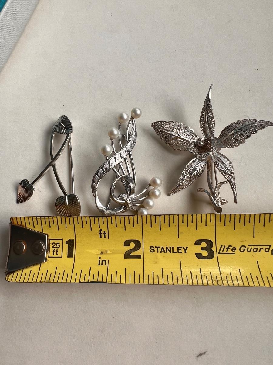 3 Vintage Brooches - Sterling Silver, Gold Filled