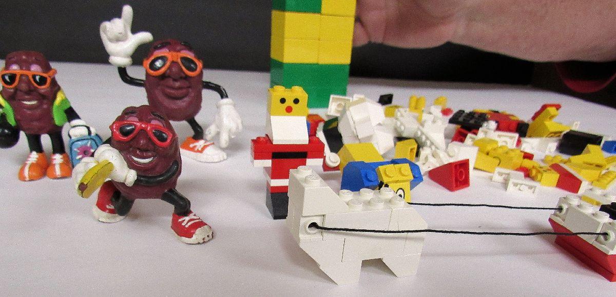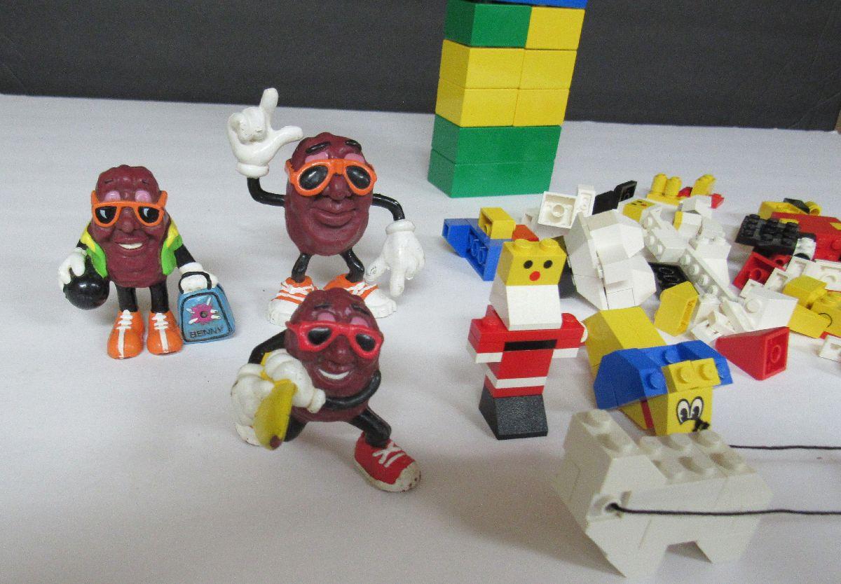 3 Vintage California Raisins Figures and Lot of Loose Lego Toys