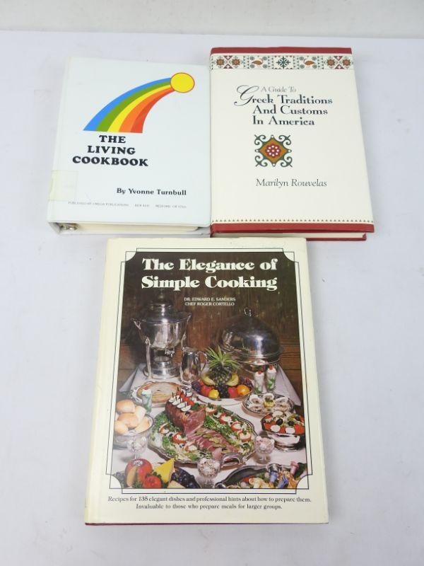 3 Vintage Cookbooks: "The Living Cookbook" -to- "The Elegance of Simple Cooking"