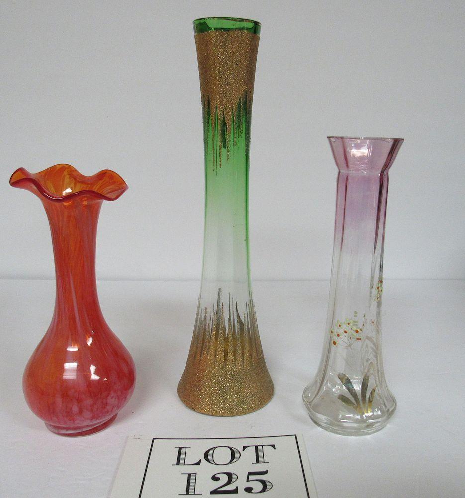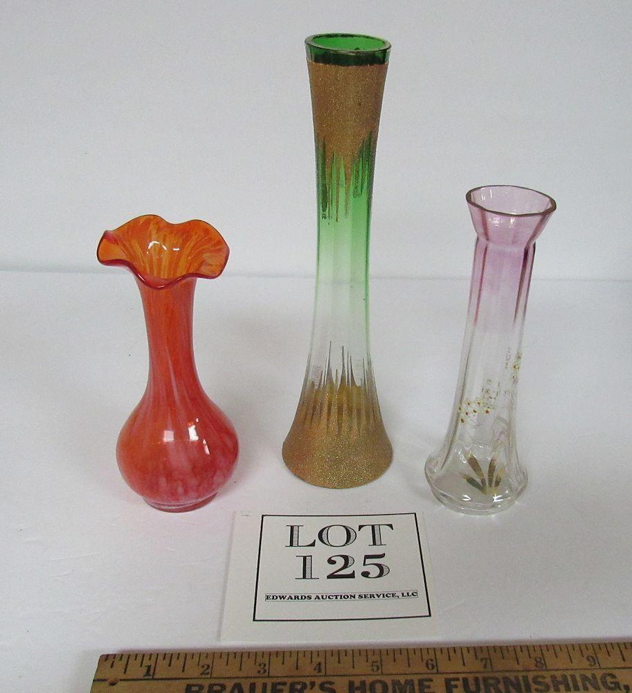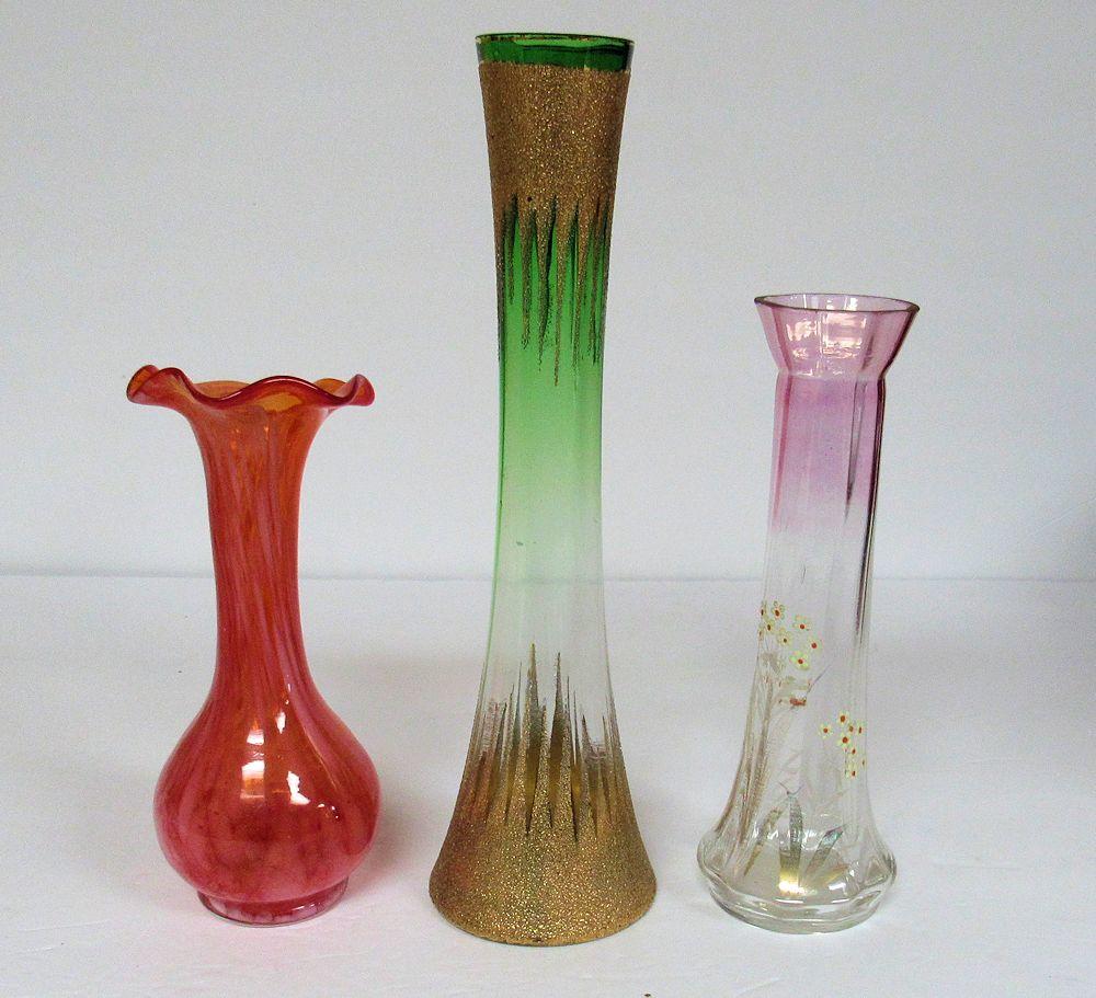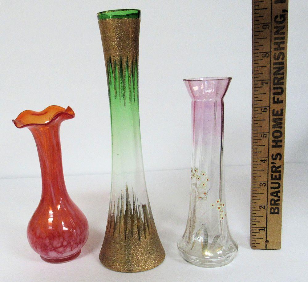 3 Vintage Decorative Glass Bud Vases