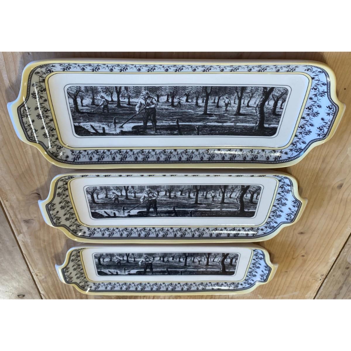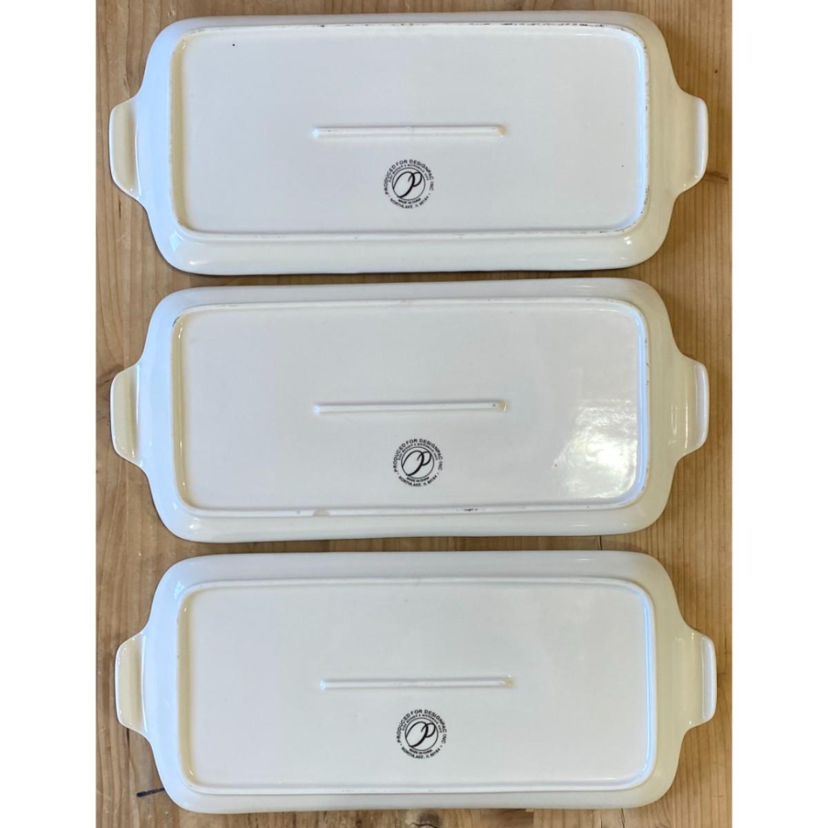 You get two ceramic serving trays that are in good condition with minor surface wear. They measure approximately 13 5/8" long by 5 7/8" wide and stand roughly 1" tall. Please see all pictures. Thank you for looking. As a reminder, if this is a lot, we do not break up lots. Also, all items are prepacked, so each item is sent individually. Any item that qualifies for media mail and weighs over one pound will be shipped via media mail. Otherwise, the item will be shipped USPS ground advantage, or UPS ground. Shipping for this item is $14.00. Items ship within two days after payment is received. Item SKU is OTH1218.