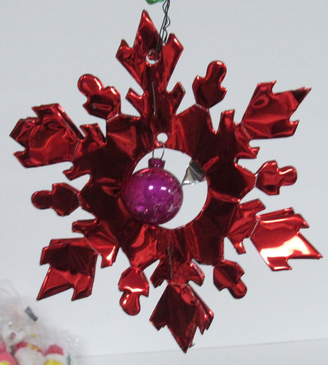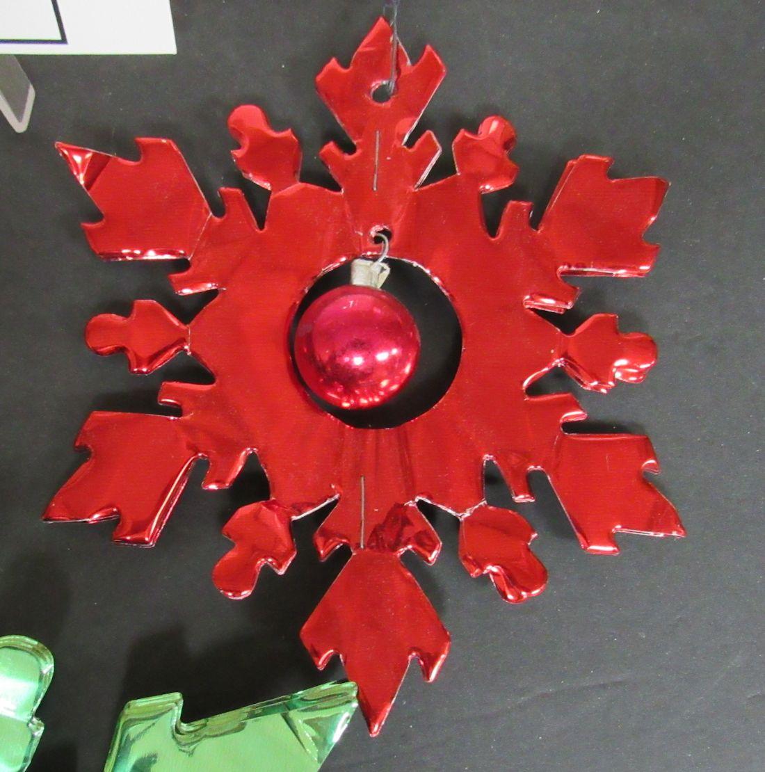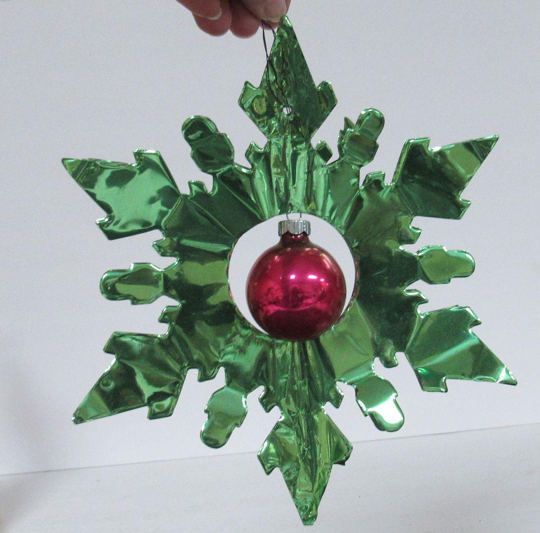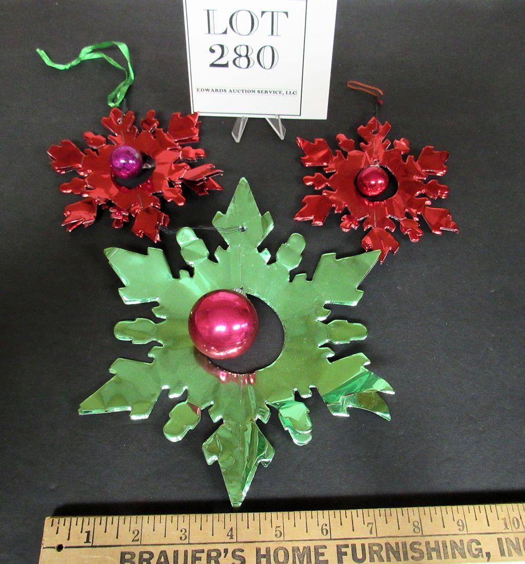 3 Vintage Dimensional Snowflake and Ball Foil and Glass Christmas Ornaments