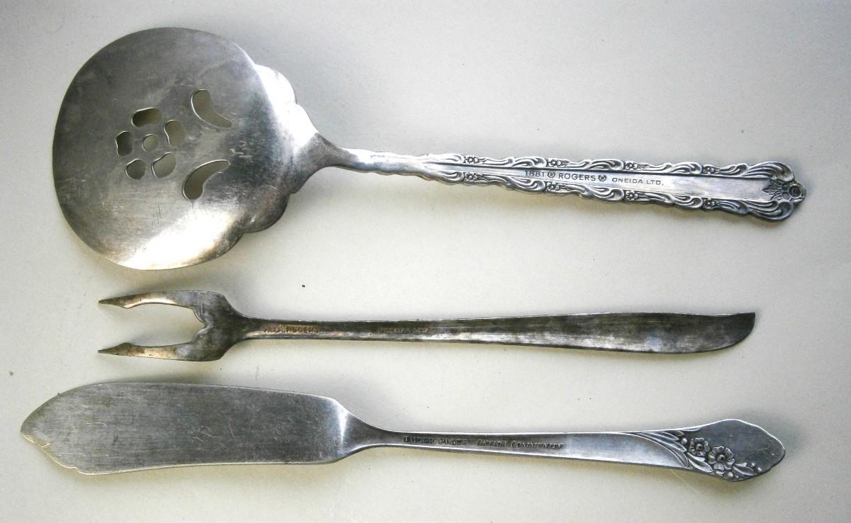 (3) Vintage Flatware Silverplate Serving Pieces, slotted spoon, butter knife, & pickle or olive fork.