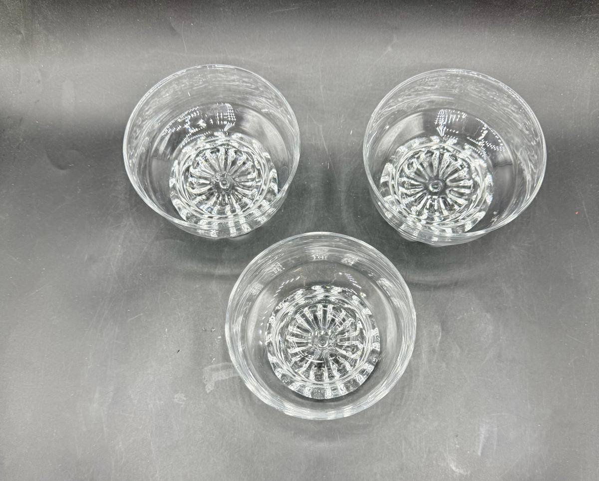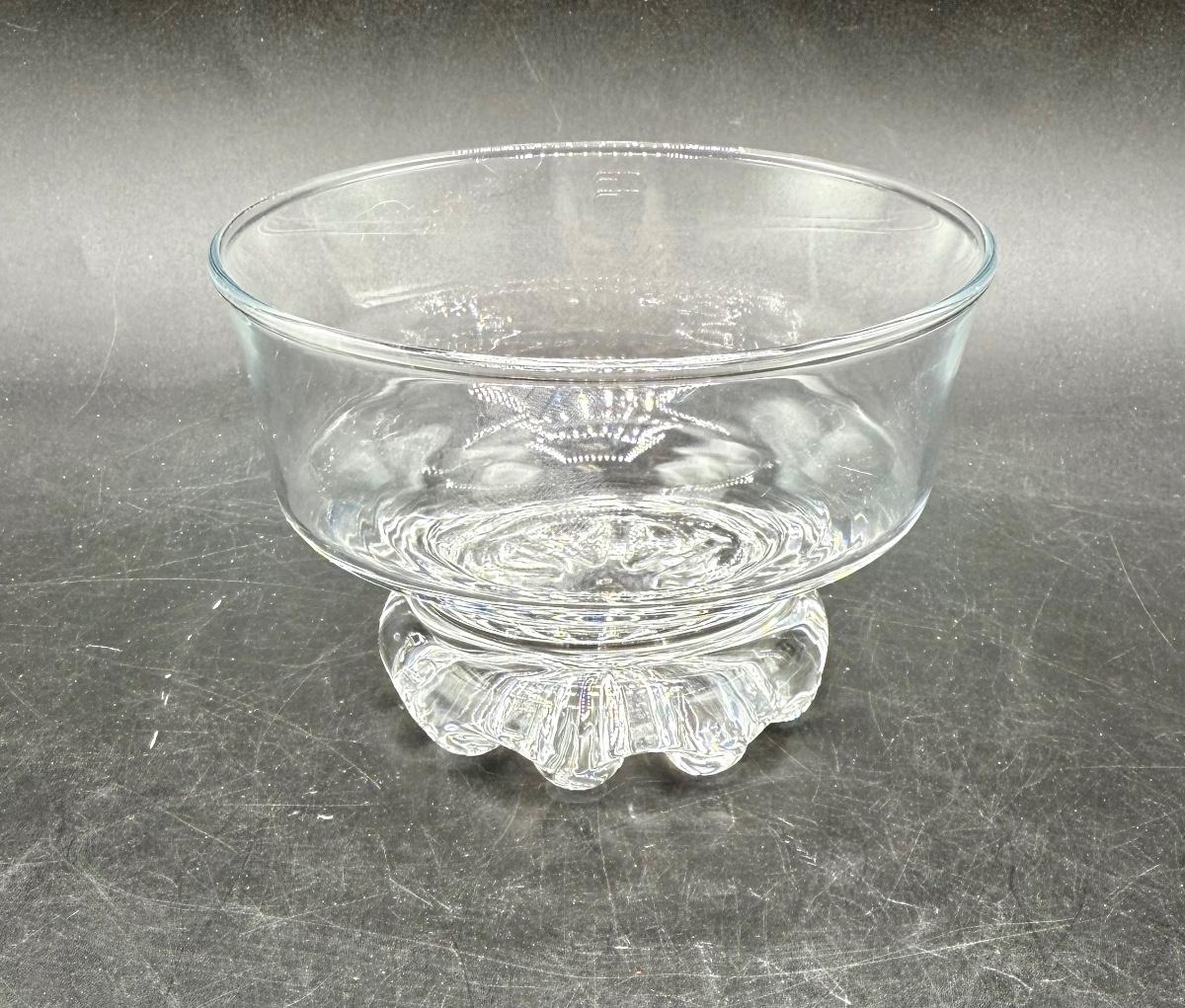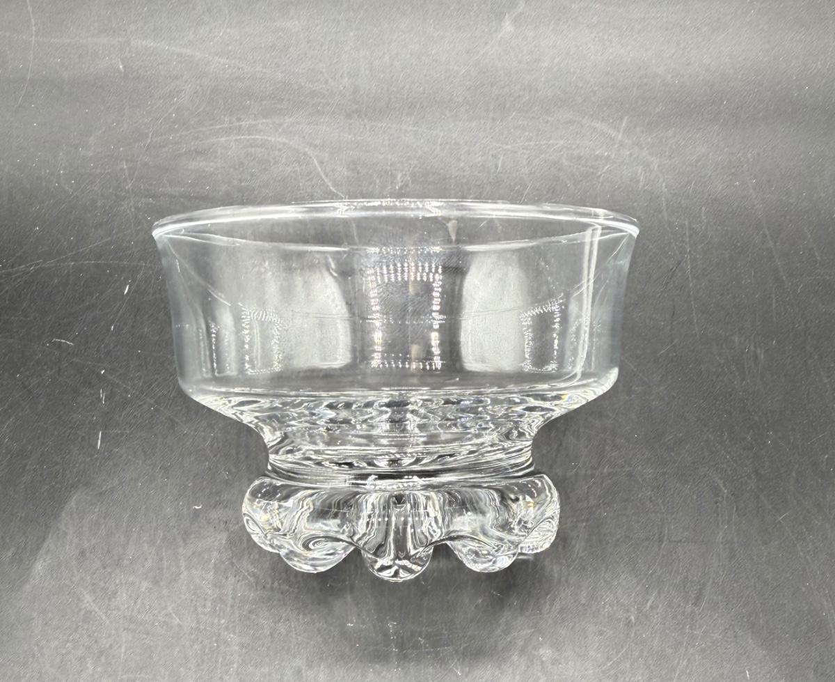 Nice set of footed glass dessert dishes. All in good condition, no chips. Approx. 2.75" high and nearly 4" across.