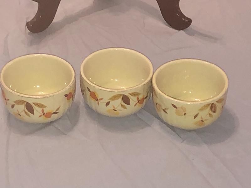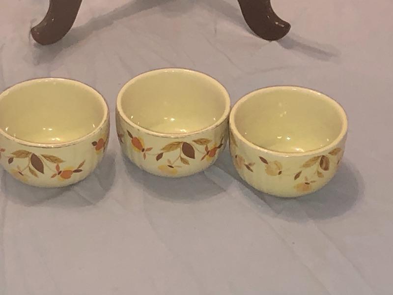 3 Vintage Hall Jewel Tea Autumn Leaf Custard Cup Dessert Bowls