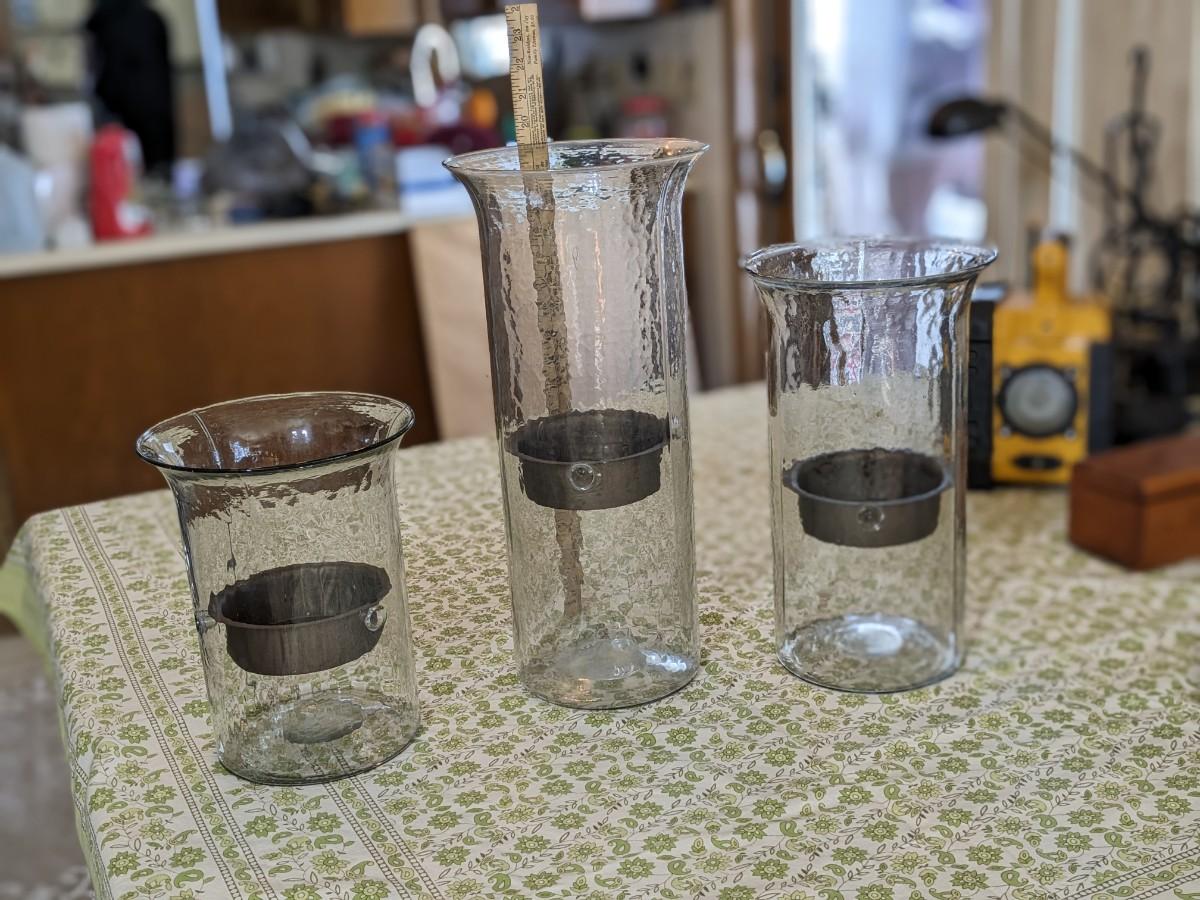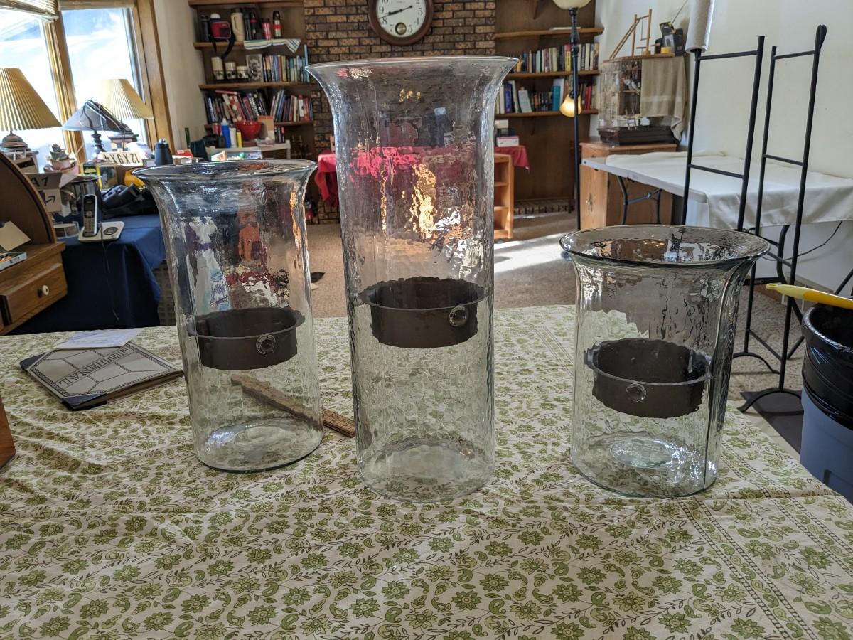 3 Vintage Hand Blown Glass Hurricane Candle Holder