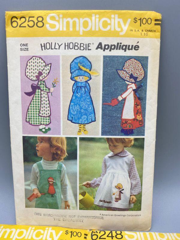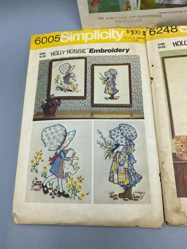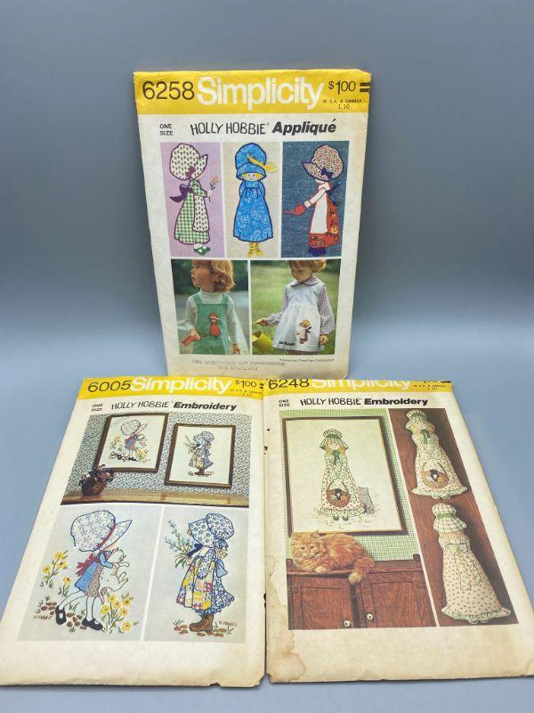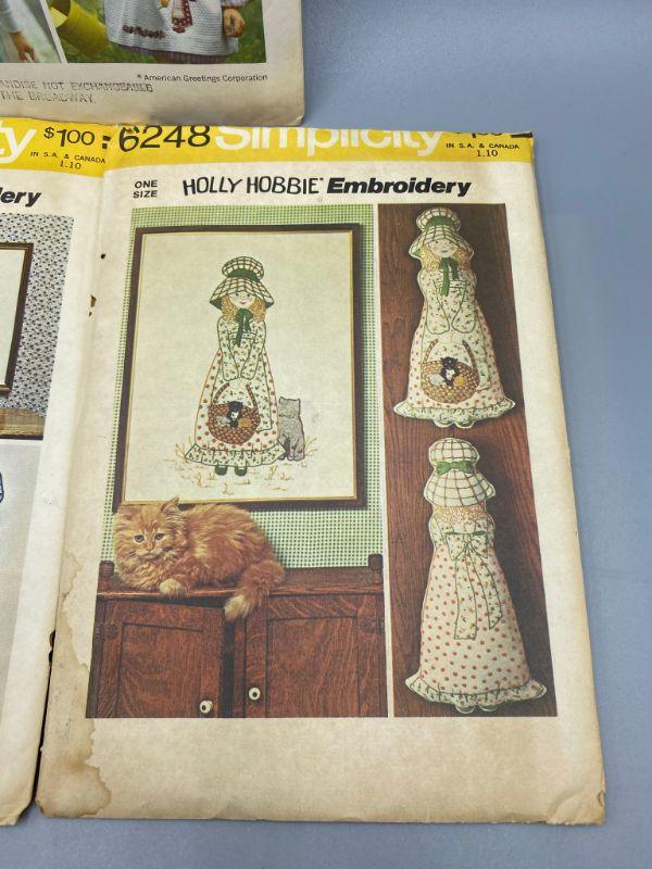 3 vintage early 1970's Holly Hobbie patterns. Made by Simplicity. Patterns are for appliques and embroidery. They look to be uncut patterns, well kept by previous owner.