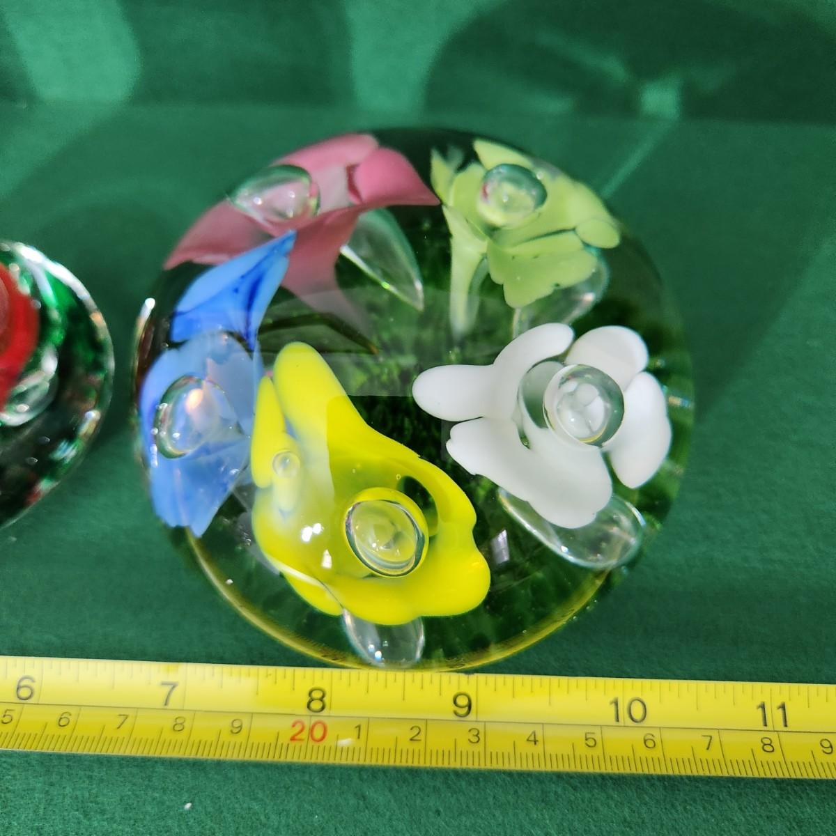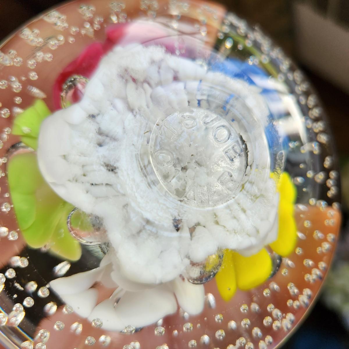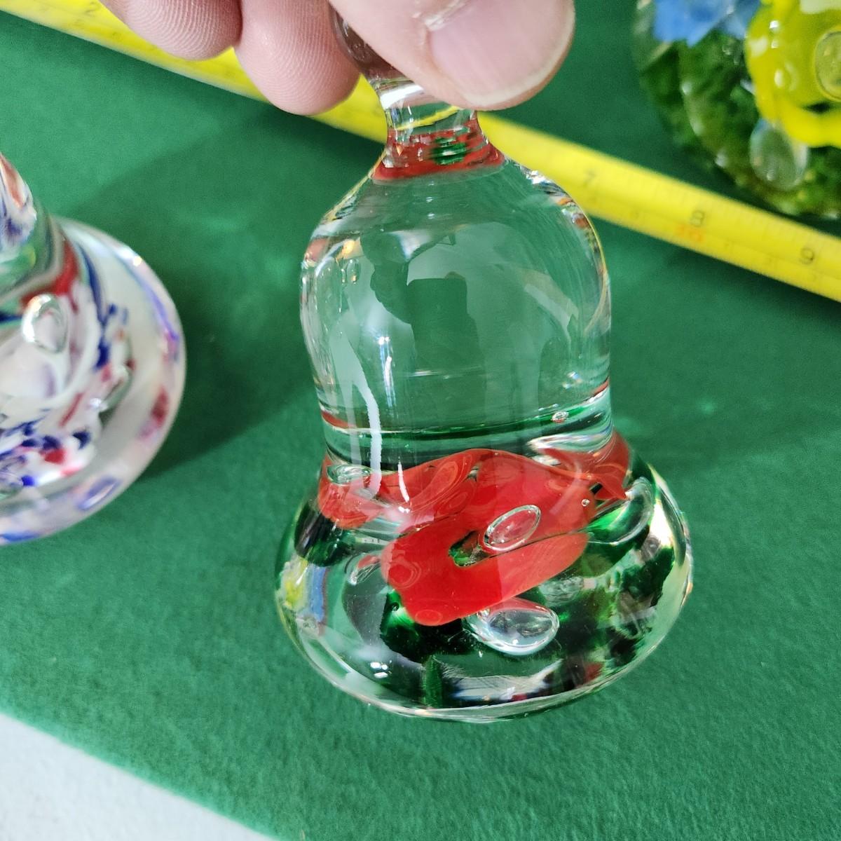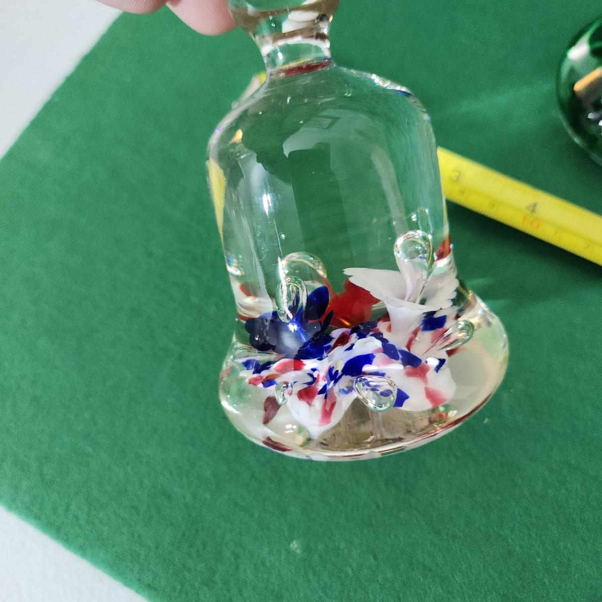 3 Vintage Joe St. Clair Art Glass Flowers Bells & Paperweight