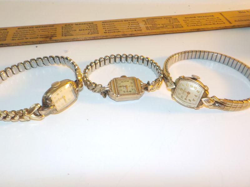 " 3 Vintage Ladies Gold repairable wrist watches".