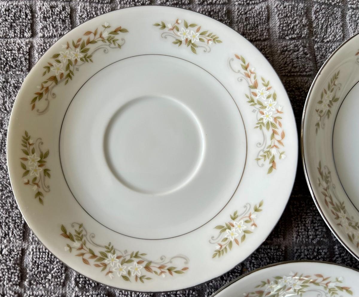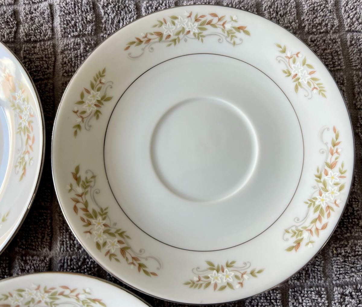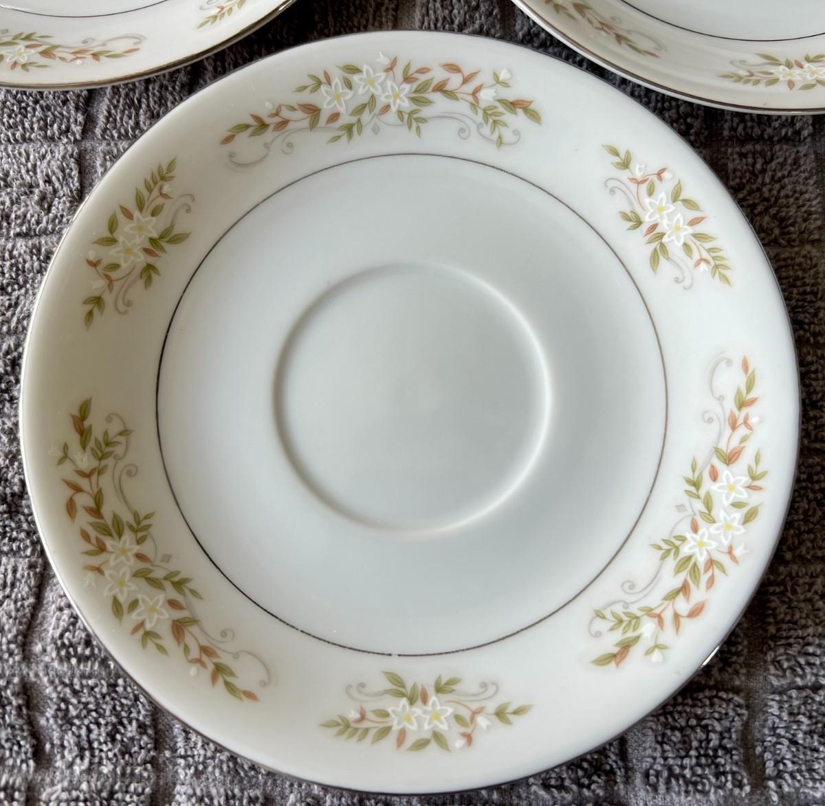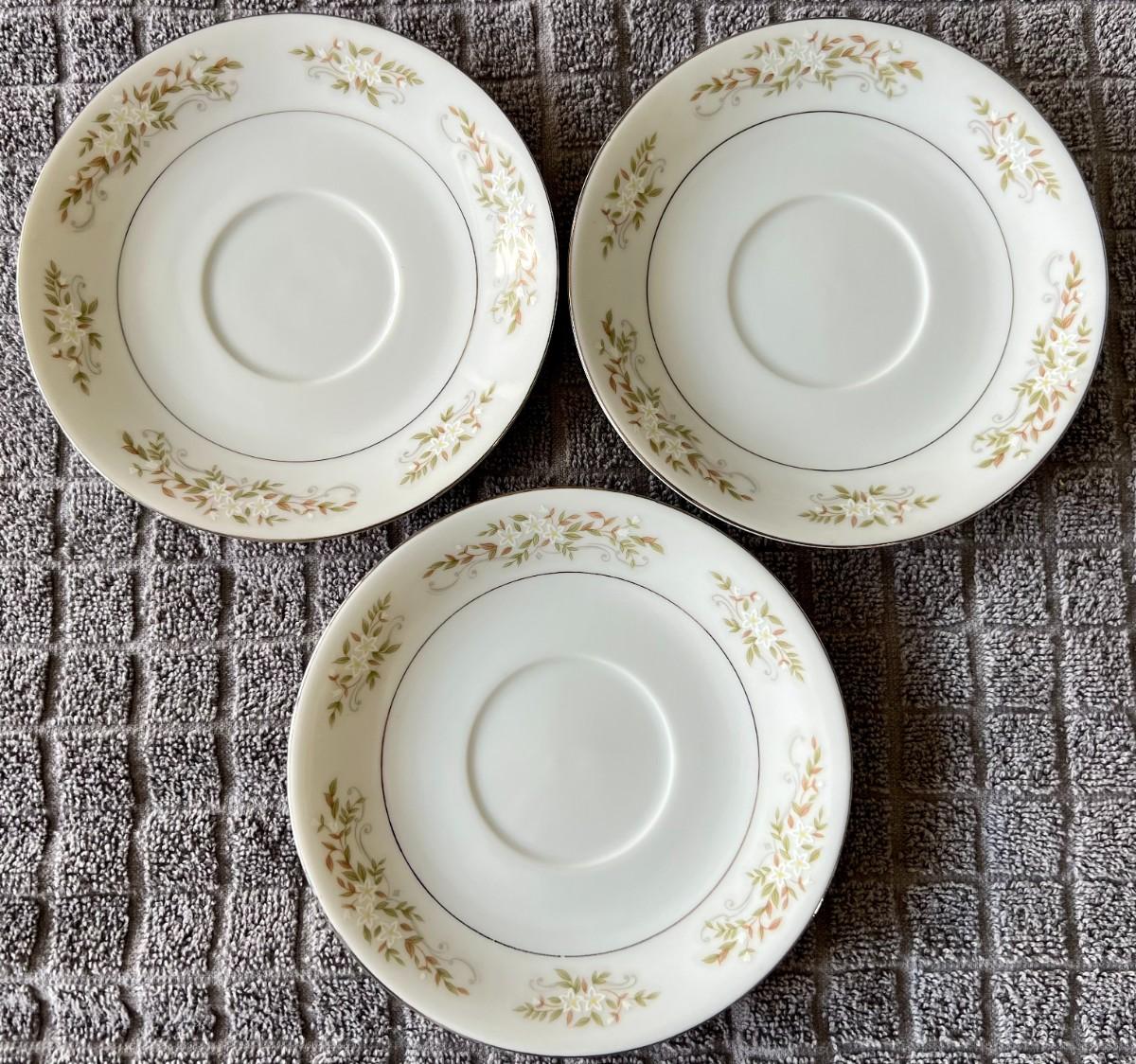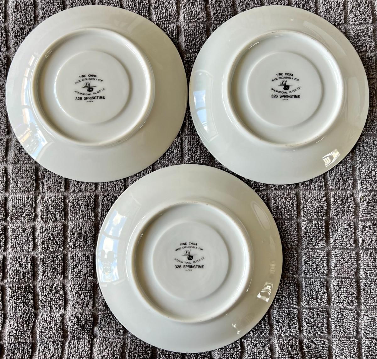 Lot of 3 matching International Silver Company floral print tea saucers. Model 326 "Springtime". Fine china. Made in Japan.