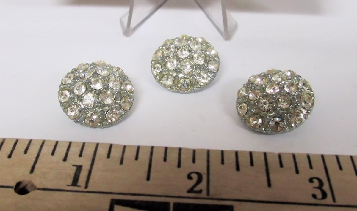 3 Vintage Matching Rhinestone Buttons, Metal Backs