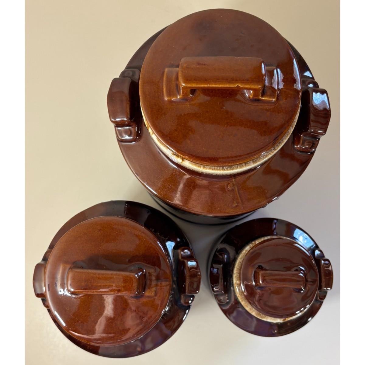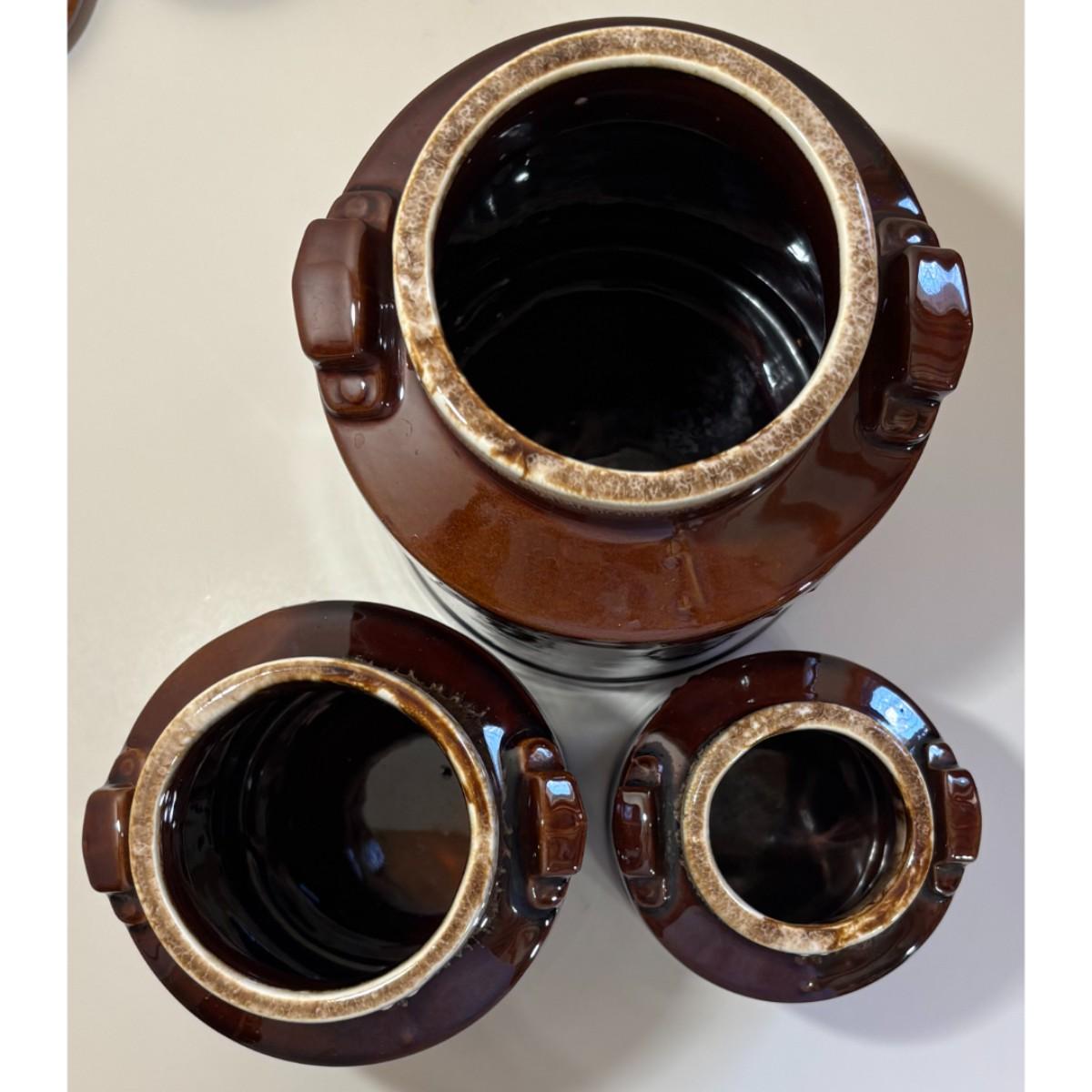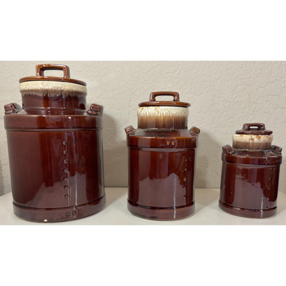 3 Vintage McCoy Brown Milk Can Canisters Jars Made In USA 331, 332, 333