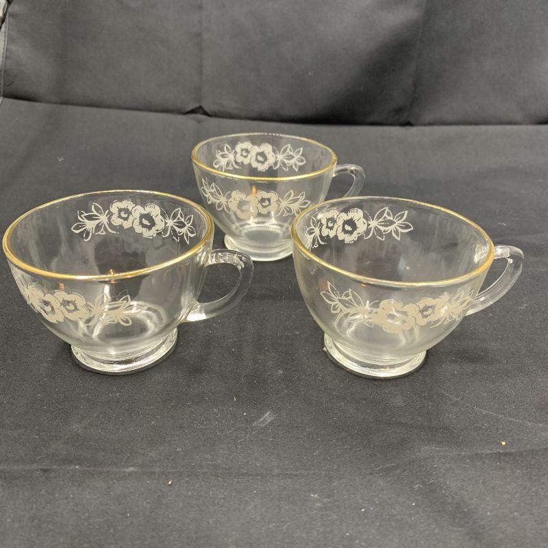 MCM White decal/enamel grape leaves design punch bowl cups