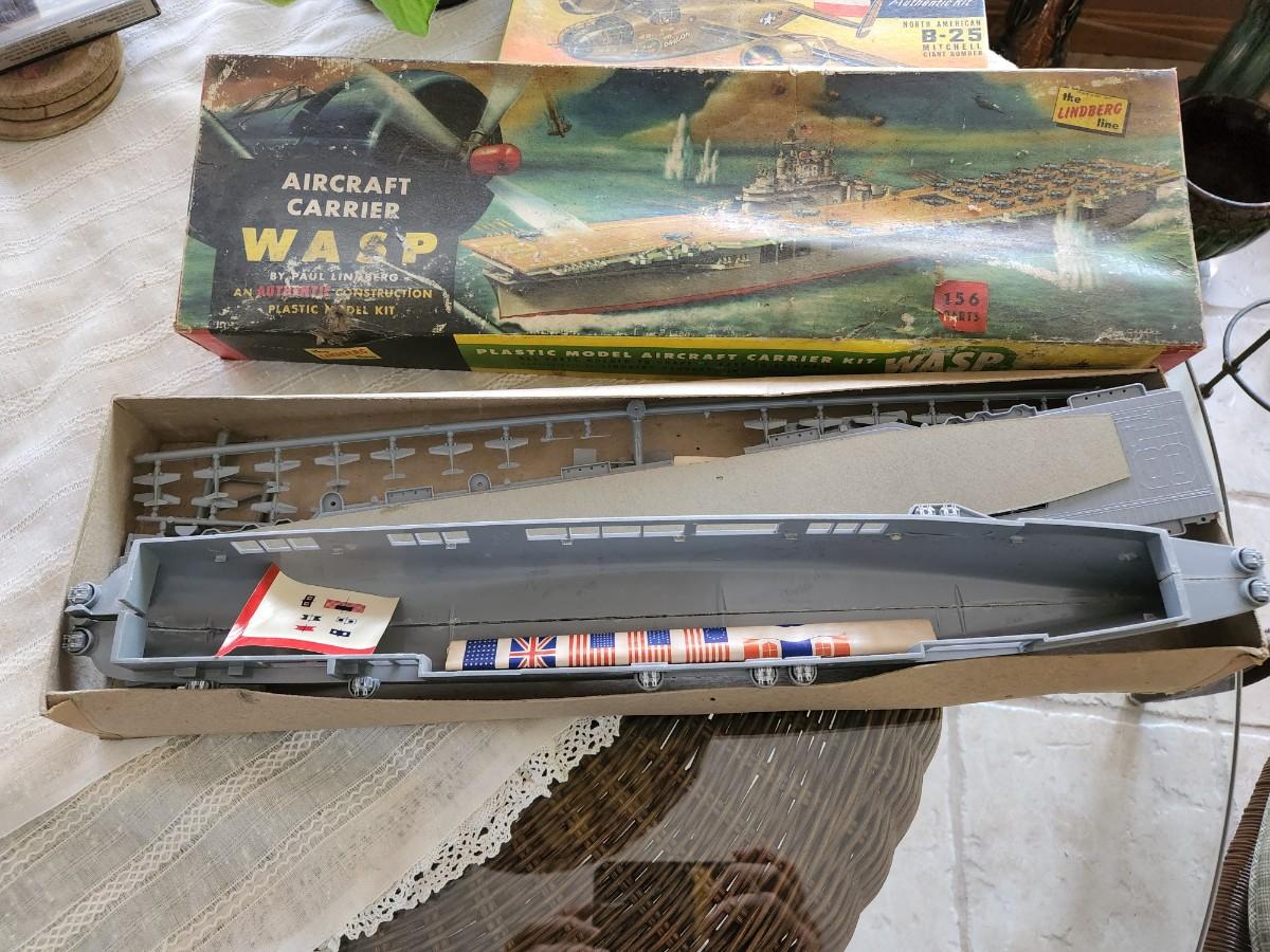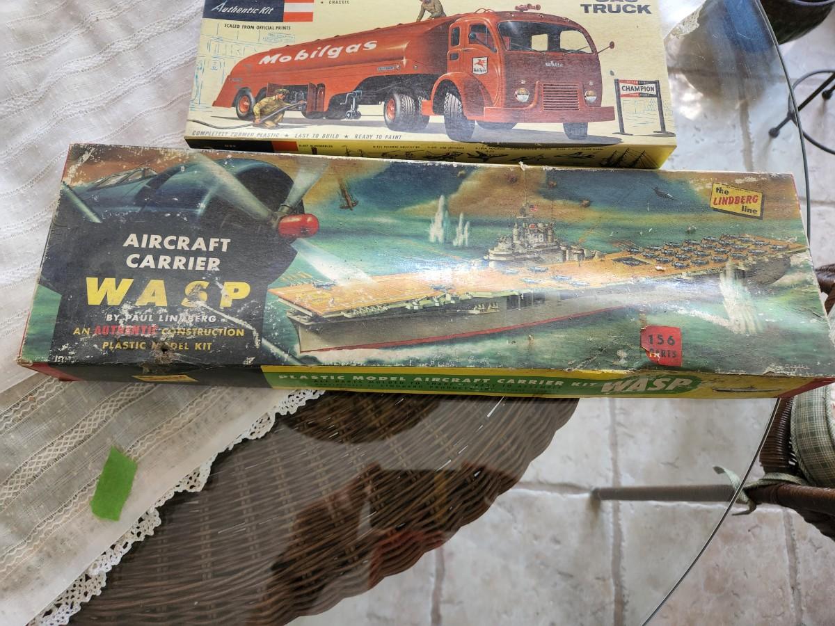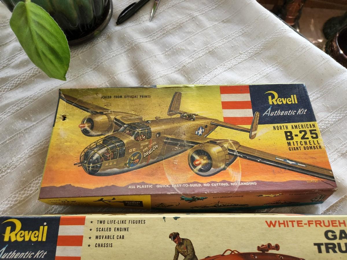 3 Vintage Model Kits Revell B-25 Mobilgas Gas Truck, Aircraft Carrier Wasp