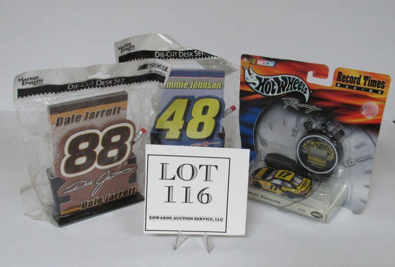 3 Vintage Nascar Items: 2 Desk Sets Dale Jarrett and Johnson, and 1 Car #17