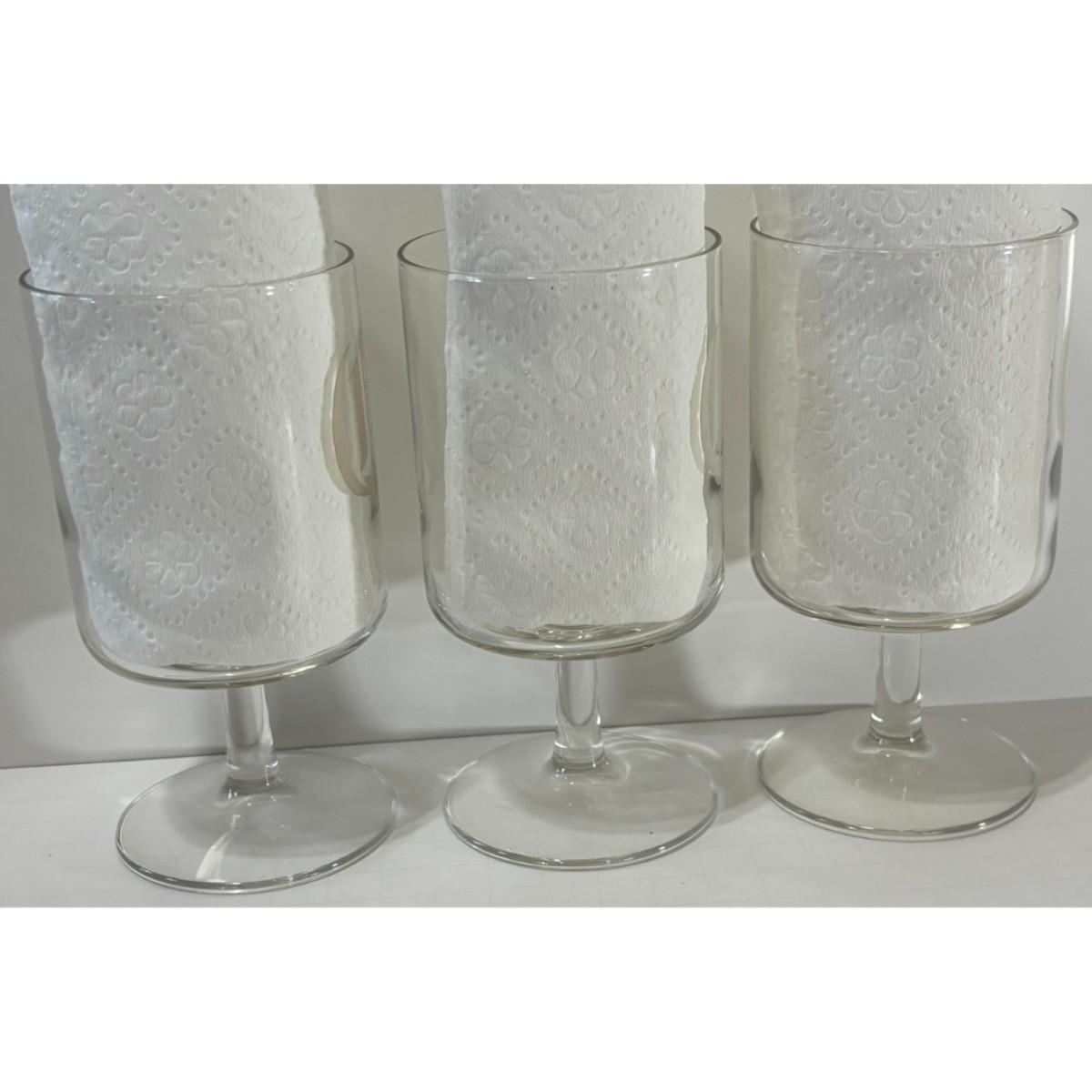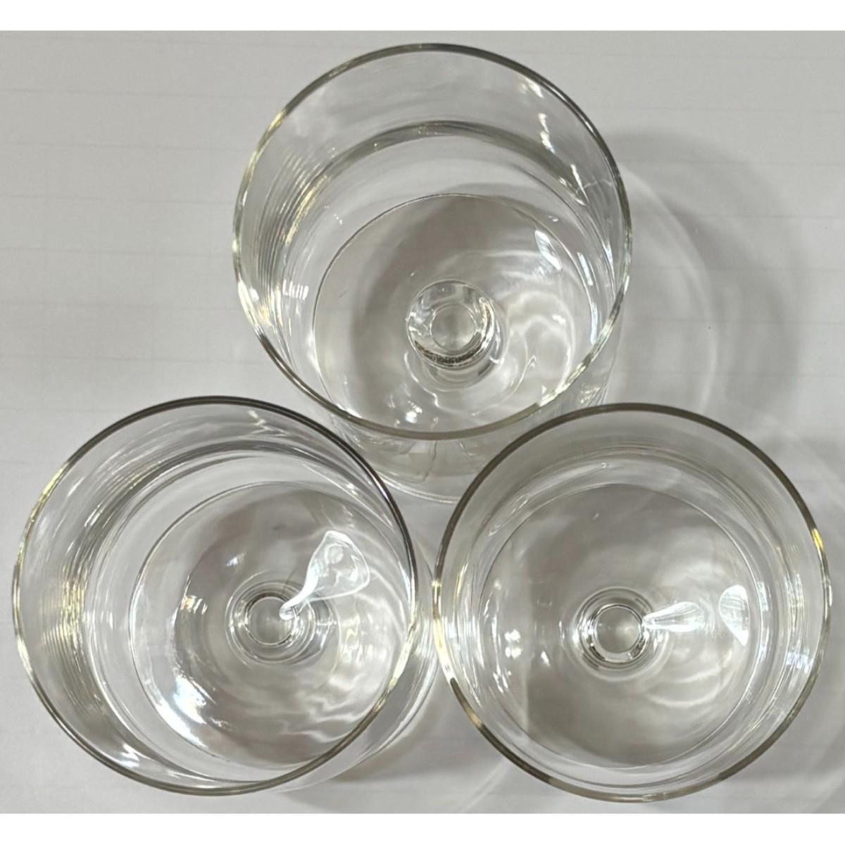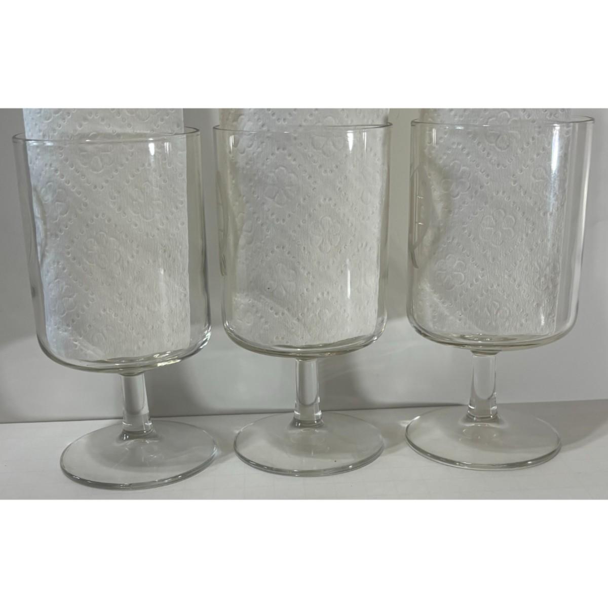You get three glasses that are in good condition with minor surface wear. Each glass stands approximately 5 5/8" tall with a 2 7/8" diameter. Please see all pictures. Thank you for looking. As a reminder, if this is a lot, we do not break up lots. Also, all items are prepacked, so each item is sent individually. Any item that qualifies for media mail and weighs over one pound will be shipped via media mail. Otherwise, the item will be shipped USPS ground advantage, or UPS ground. Shipping for this item is $12.00. Items ship within two days after payment is received. Item SKU is MUG304.