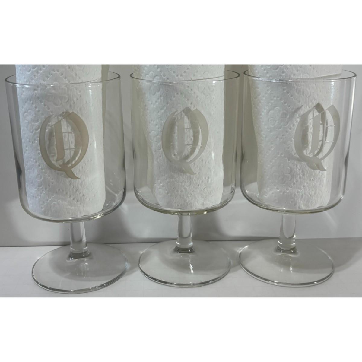 3 Vintage Olde English Monogram Letter 'Q' Etched Pedestal Wine Glasses