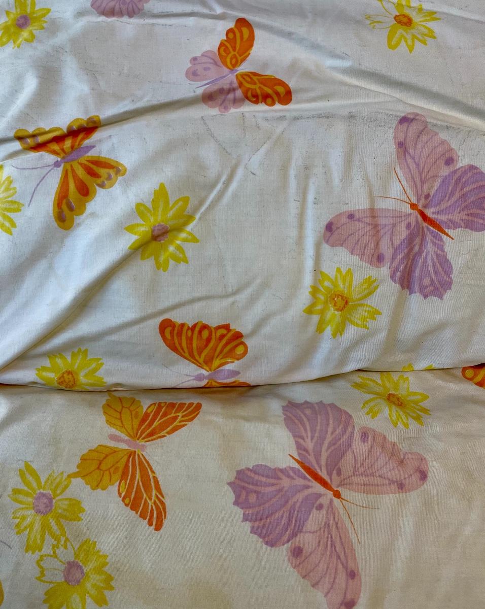 Set of 3 Vintage 1970s Butterfly Pattern Bed Pillows. One is in a The Broadway bag, not really sure if that is original or what previous owner used for storage. They are in good used vintage condition.