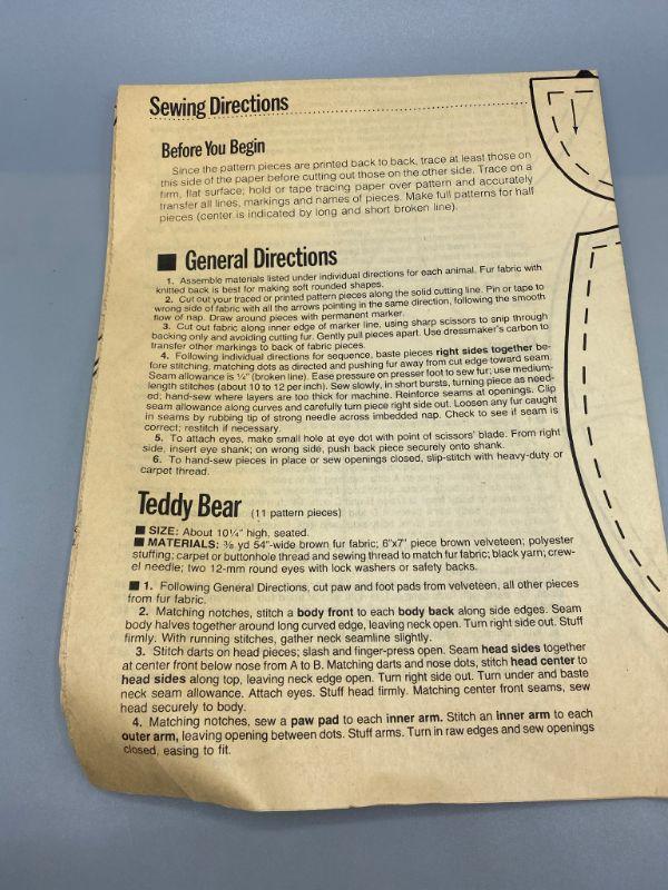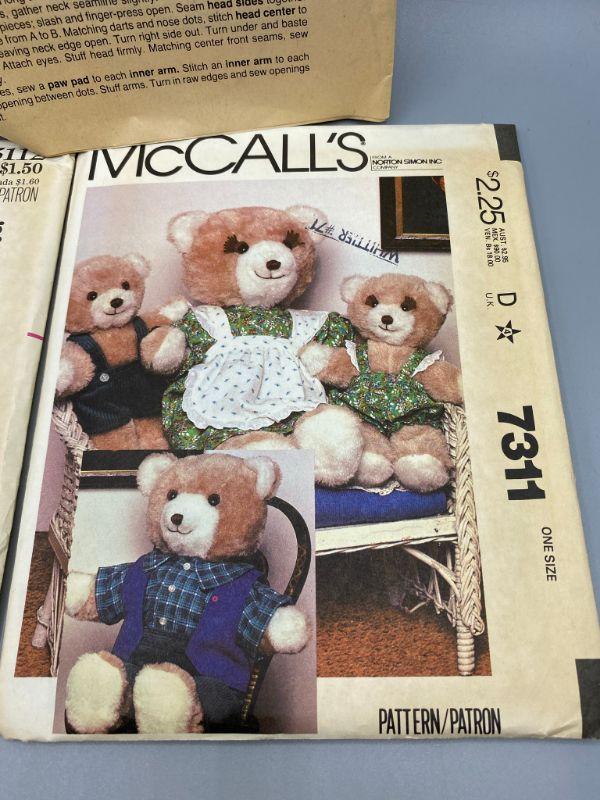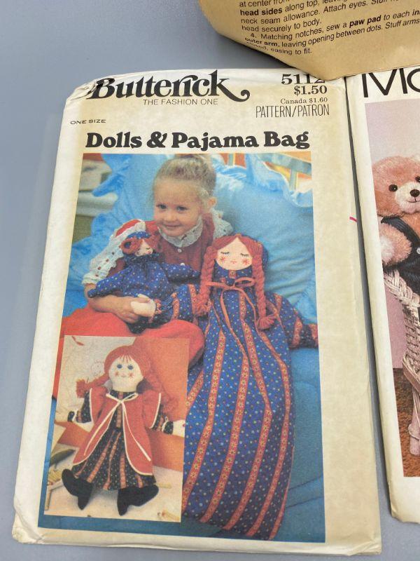 Set of 3 vintage plush doll patterns. One from Butterick, one from McCall's, and one is a unbranded pattern. All are in good condition, well kept.