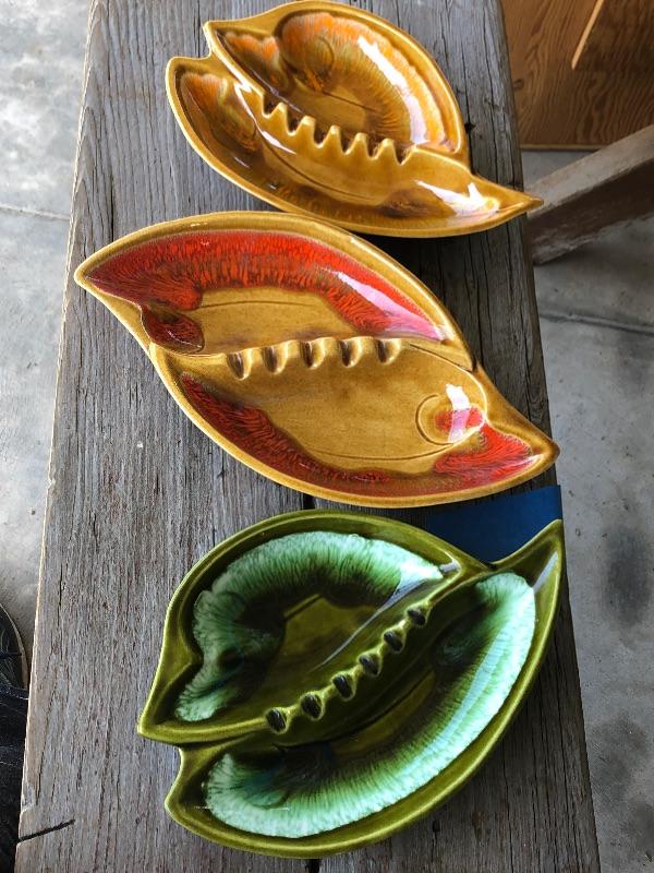 3 Vintage ashtrays. Colorful pottery. 2 are Santa Anita Ware, the other is not marked but believe it is Santa Anita Ware as well. These are #R11 and R11B