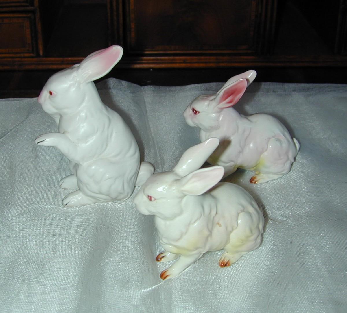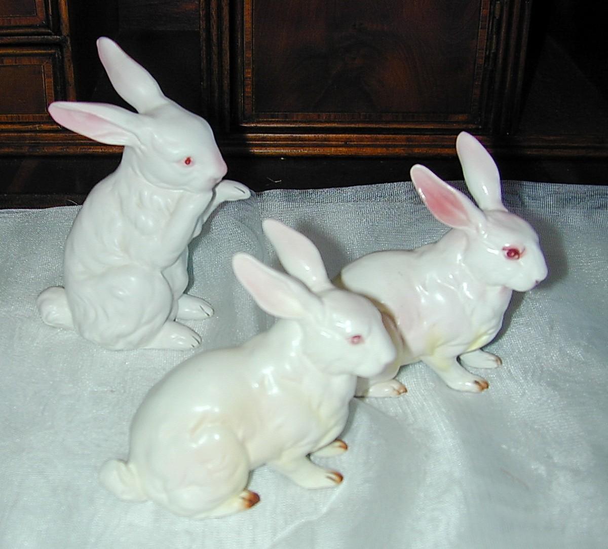 3 Vintage Rabbit Figurines - approx. 4.75" tall