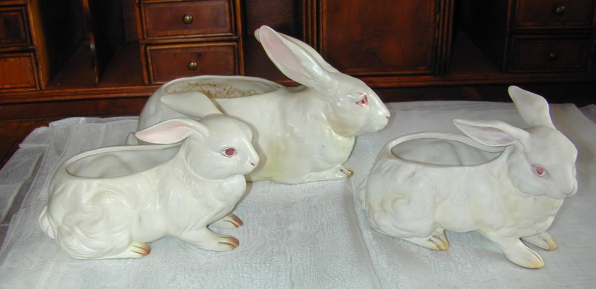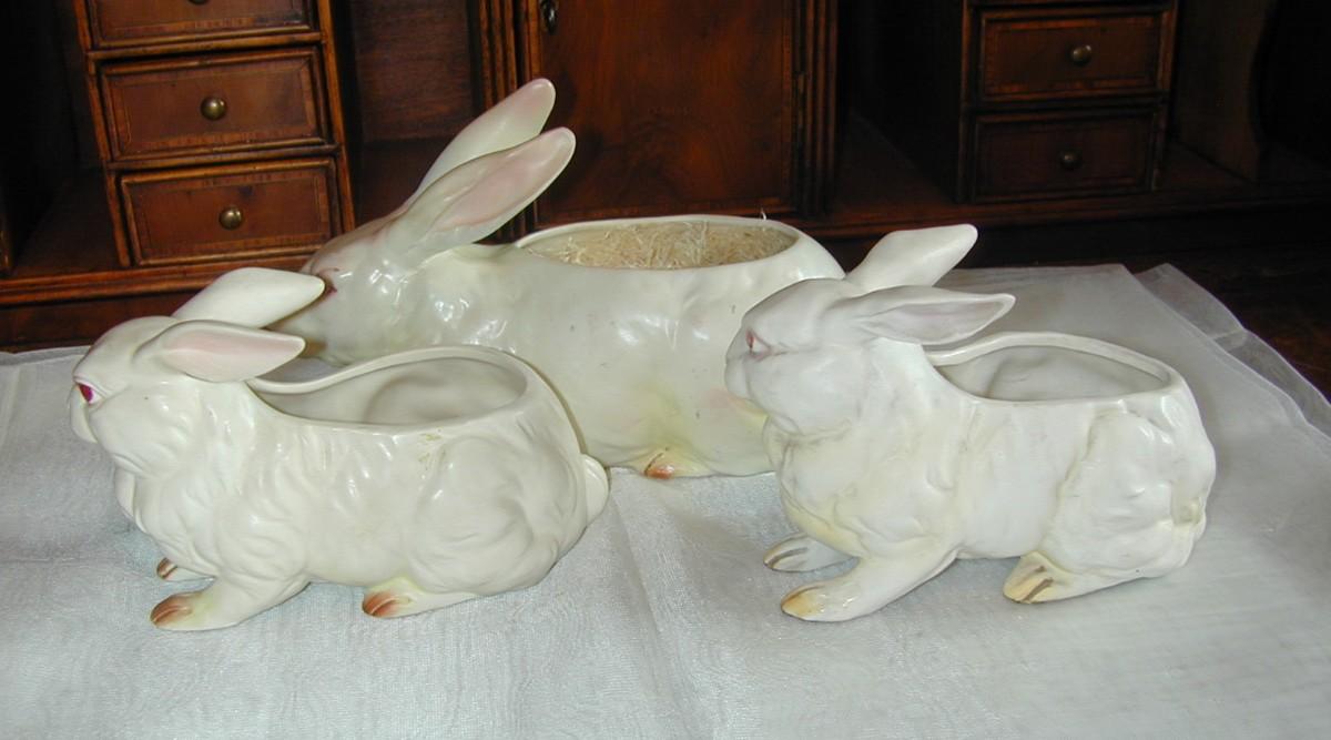 3 Vintage Rabbit Planters -The largest is 10" Long