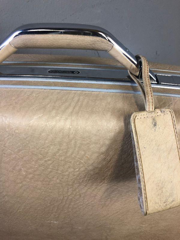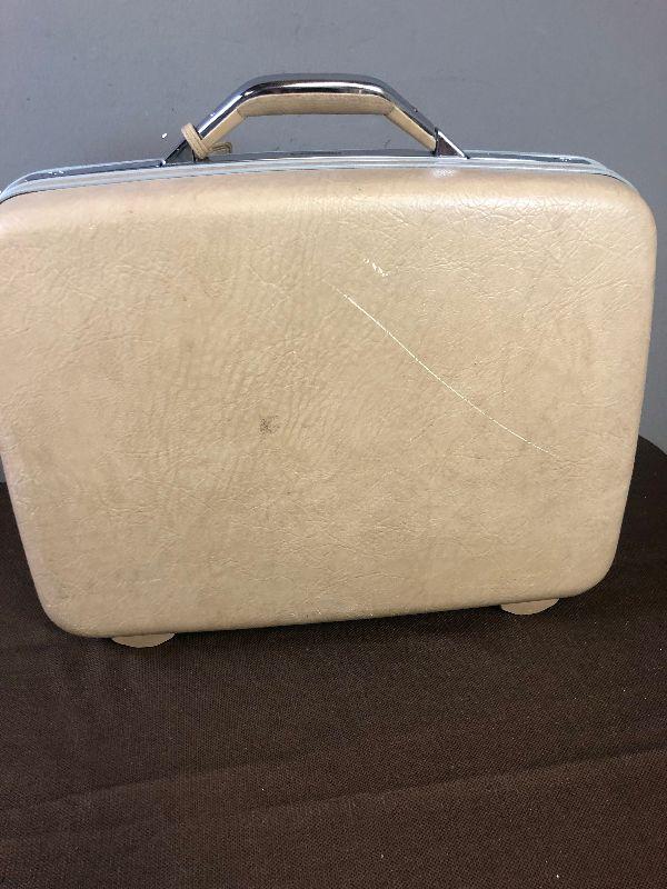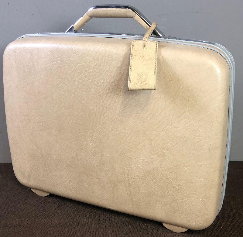 Cream Colored Luggage.20 x 16 x 7" Good Original Condition, some ware from use. Interior is in nice Shape