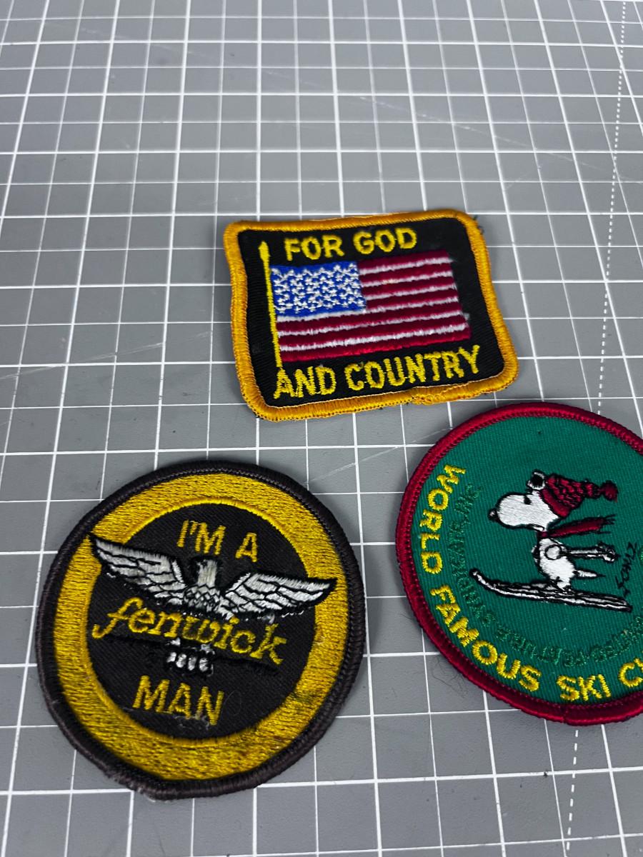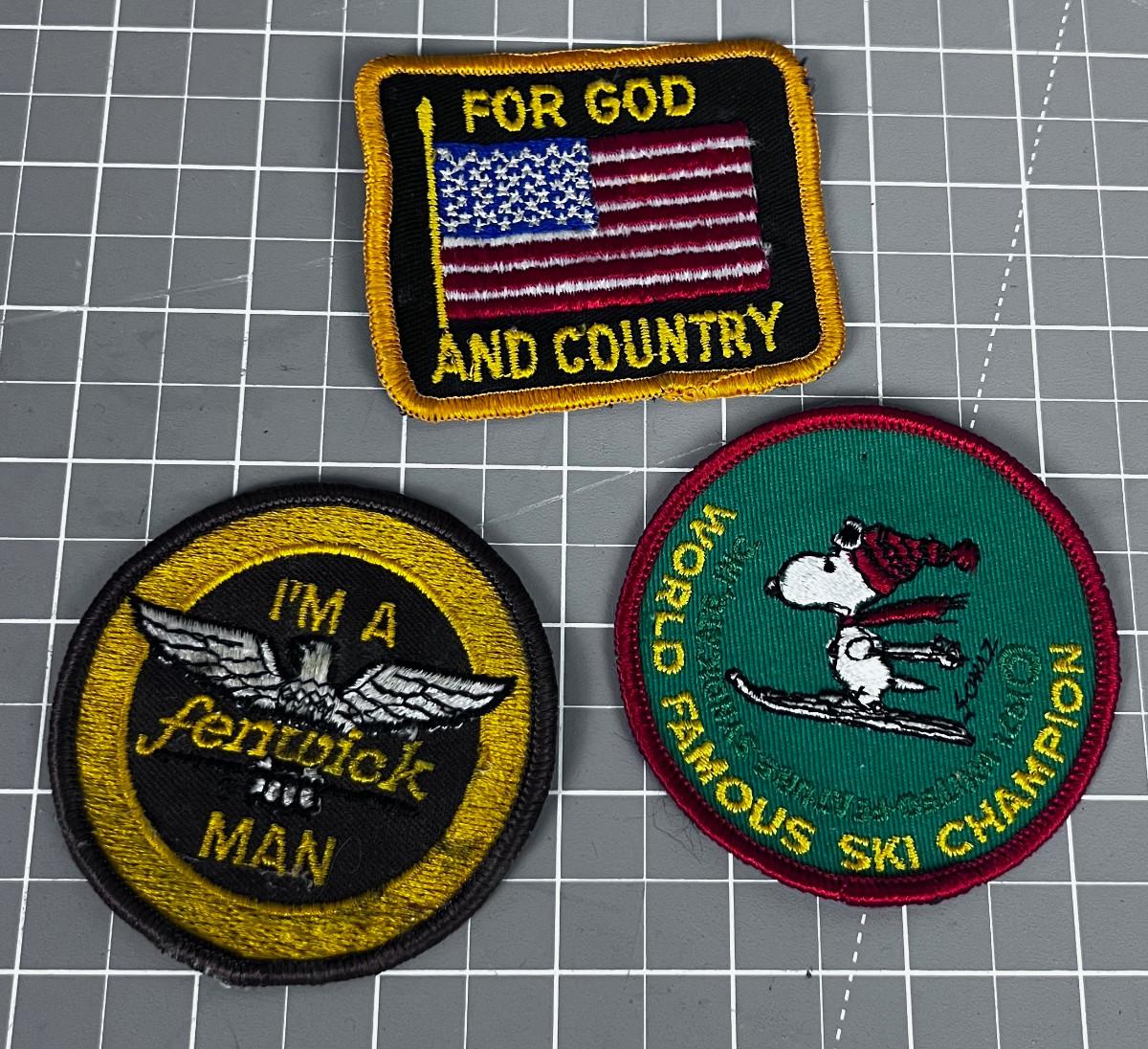 (3) Vintage; Snoopy Skiing, For God & Country, I'm a Fenwick Man