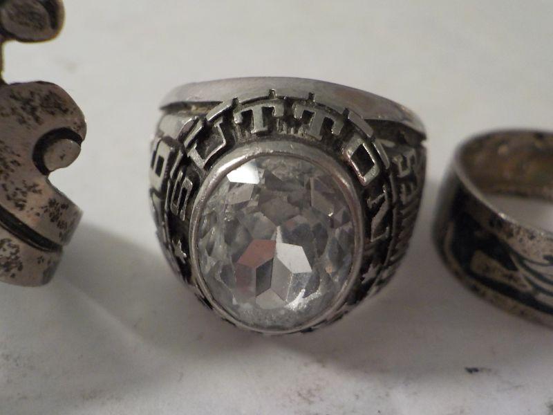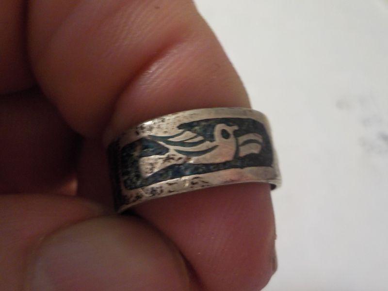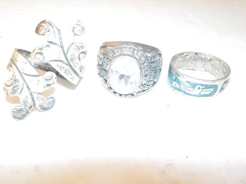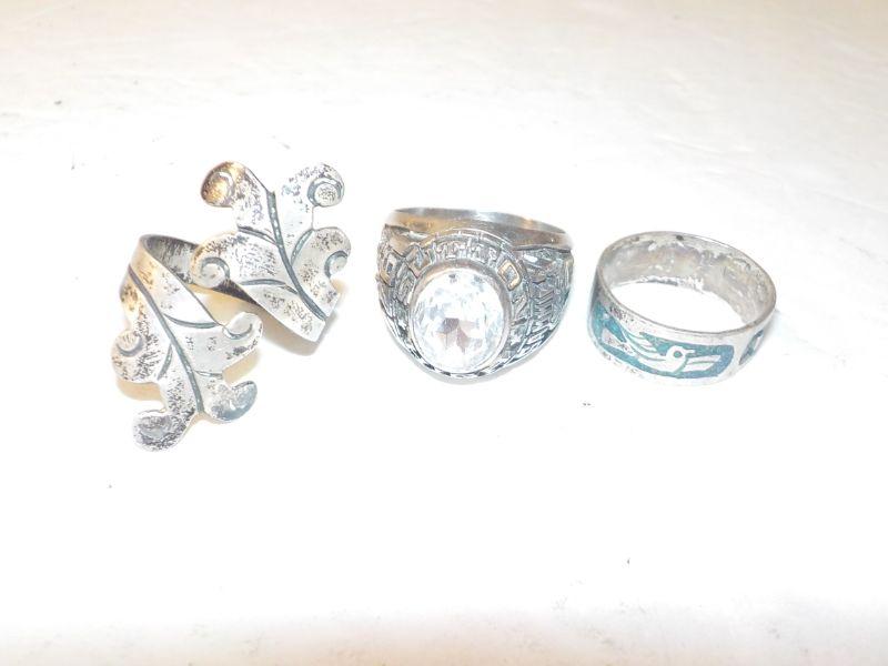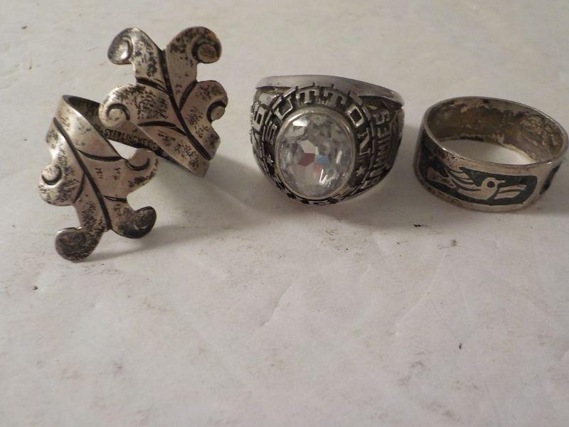 3 Vintage sterling rings, Sutton H.S. (1977), Indian Leaf, Peace dove.