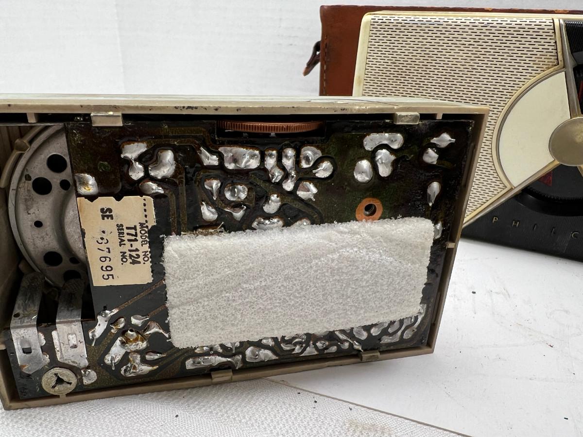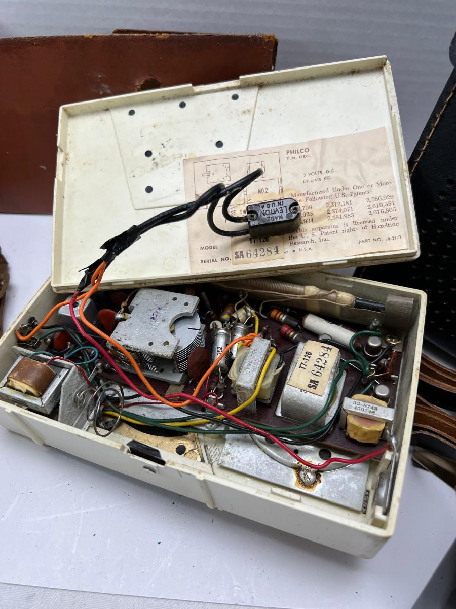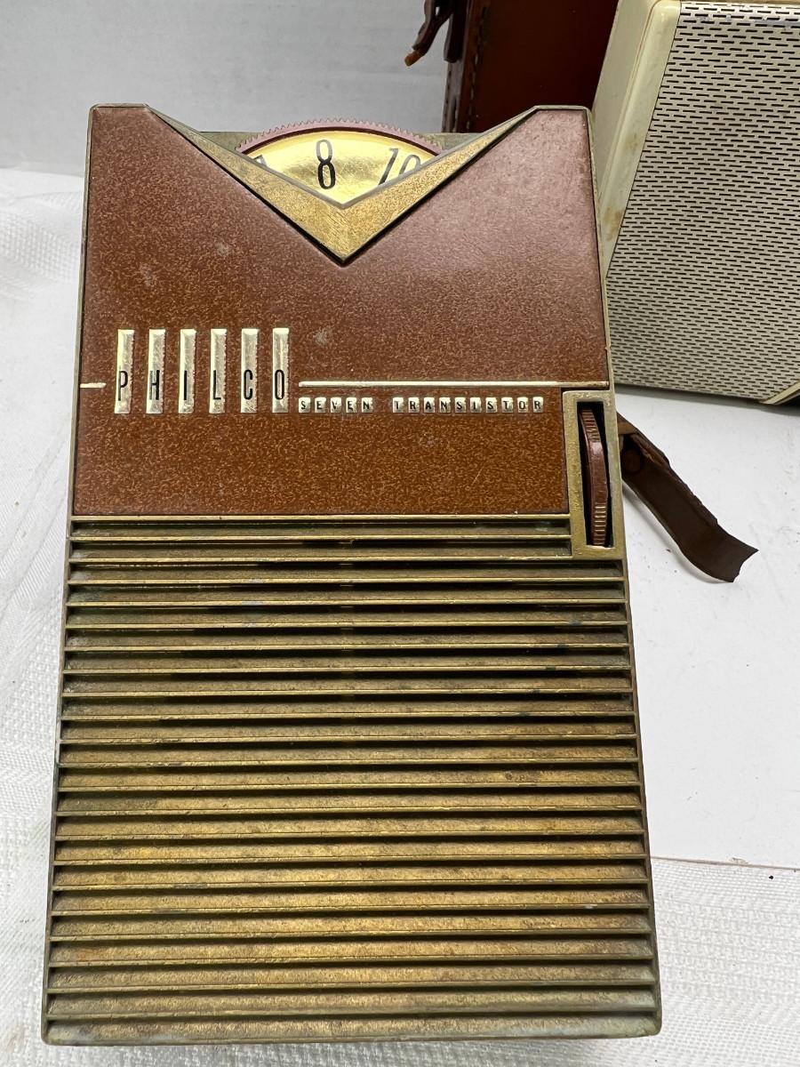 2 Philco, 1 Zenith with cases. style numbers in the pictures. Great looking styles, untested for repair, propr or restoration. Units are being sold as a "non-working" vintage electronic device that should be gone over by a qualified technician prior to use. May have rust, corrosion or other flaws see pictures.