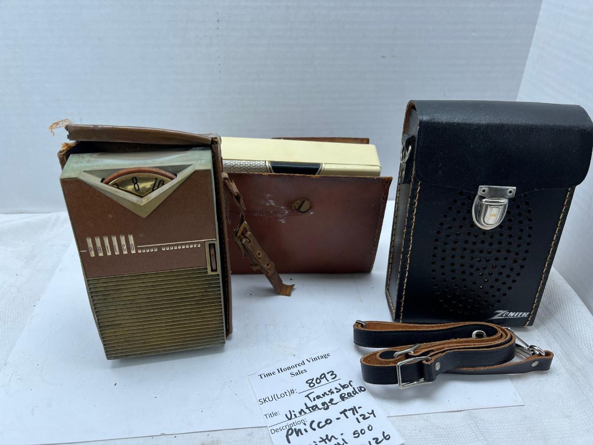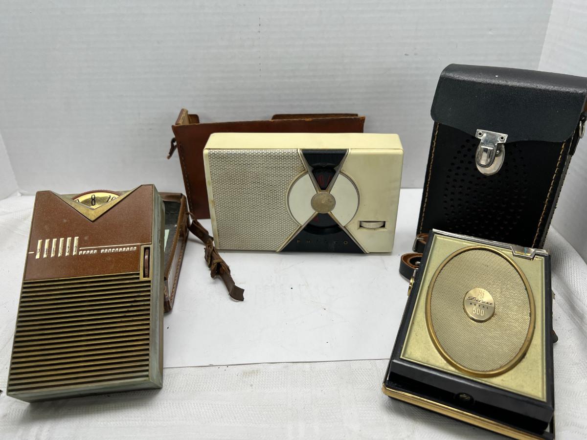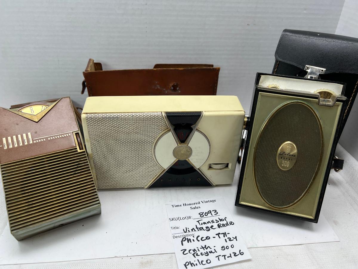 2 Philco, 1 Zenith with cases. style numbers in the pictures. Great looking styles, untested for repair, propr or restoration. Units are being sold as a "non-working" vintage electronic device that should be gone over by a qualified technician prior to use. May have rust, corrosion or other flaws see pictures.