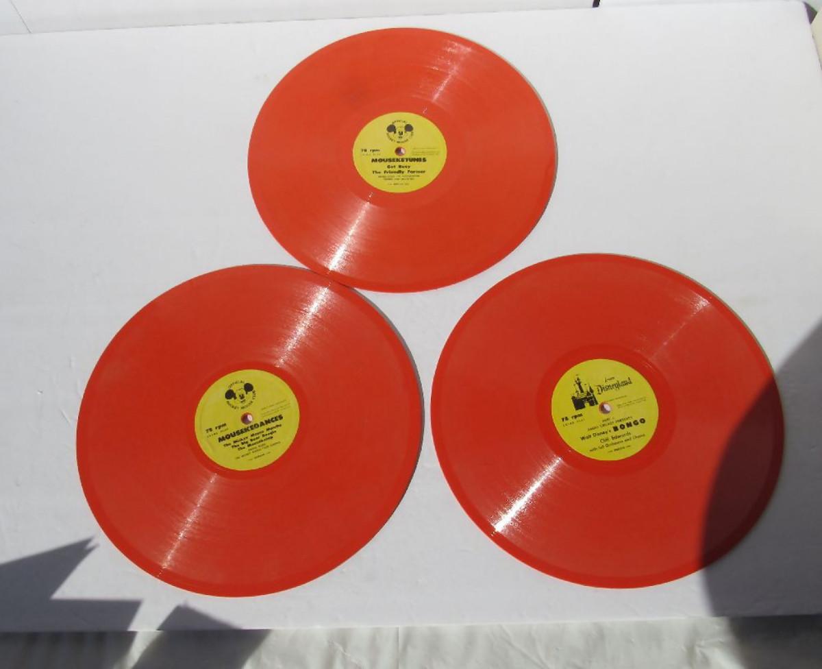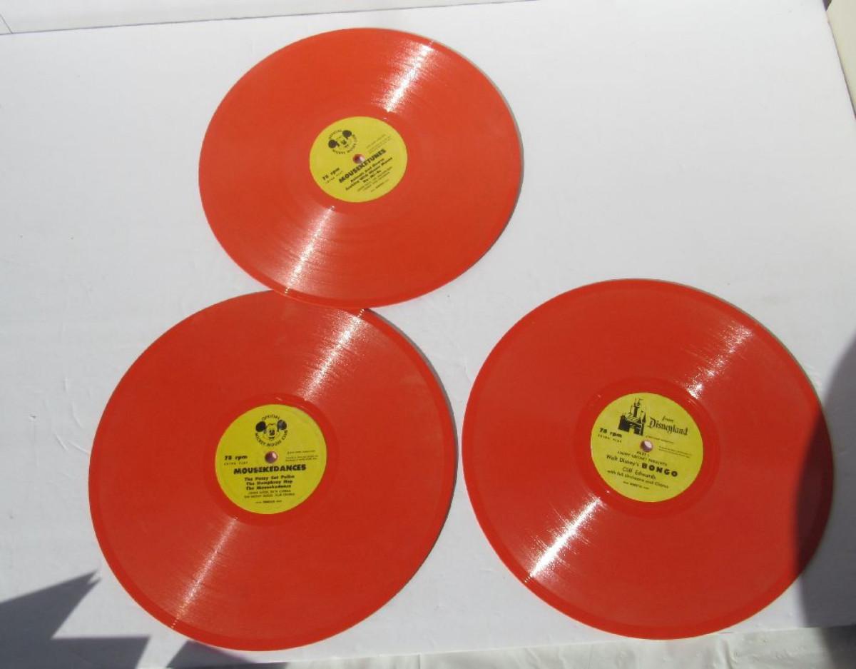 3 Vintage Walt Disney 78 RPM Records, Peter Pan, Mousekedances and Mouseketunes