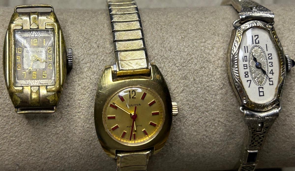 Winton, Bulova & unknown. The stones might be blue sapphires, there’s no clasp on the watch bracelet The bulova is in great shape!!