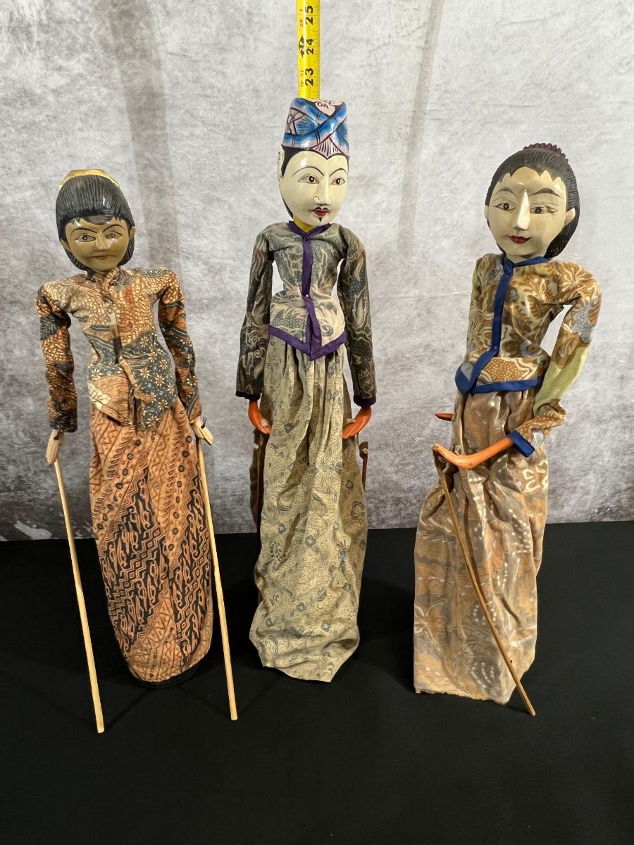 3 Vintage Wayang Golek Indonesian Shadow Puppets