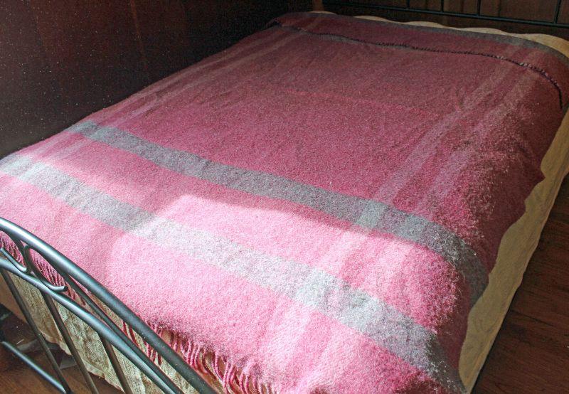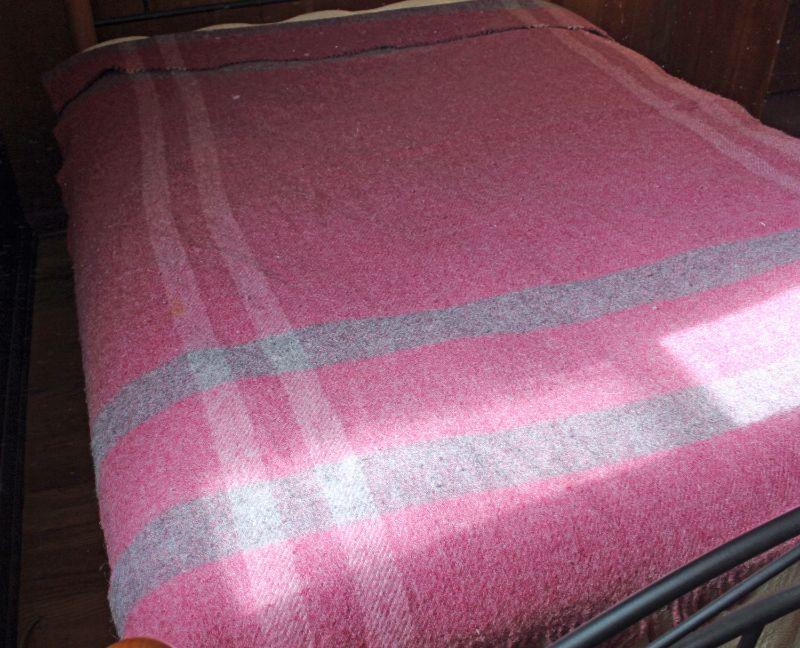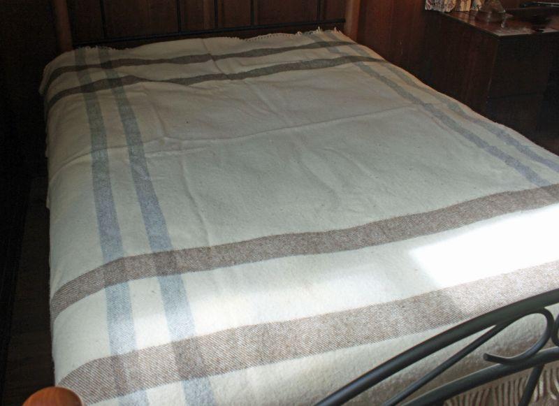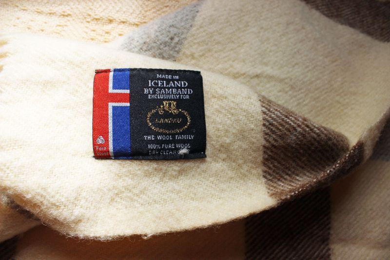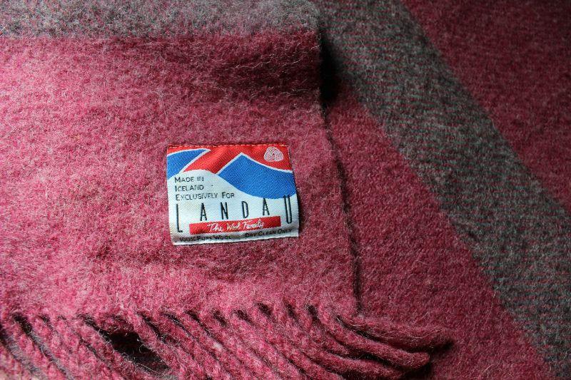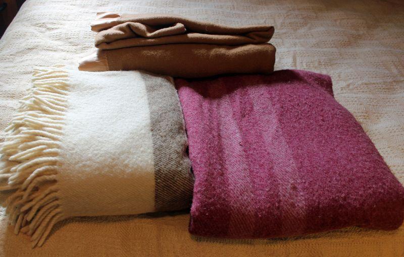 All in good overall condition but all need cleaning. No moth holes that I can find. Brown Blanket has satin binding at top and bottom. It measures 78" x 92". Raspberry Blanket with Gray and White stripes measures 58" x 76". One end has full length fringe, the other has shorter fringe. The Cream and brown blanket is 60" x 76". Both the last 2 blankets were made in Iceland. All need cleaning.